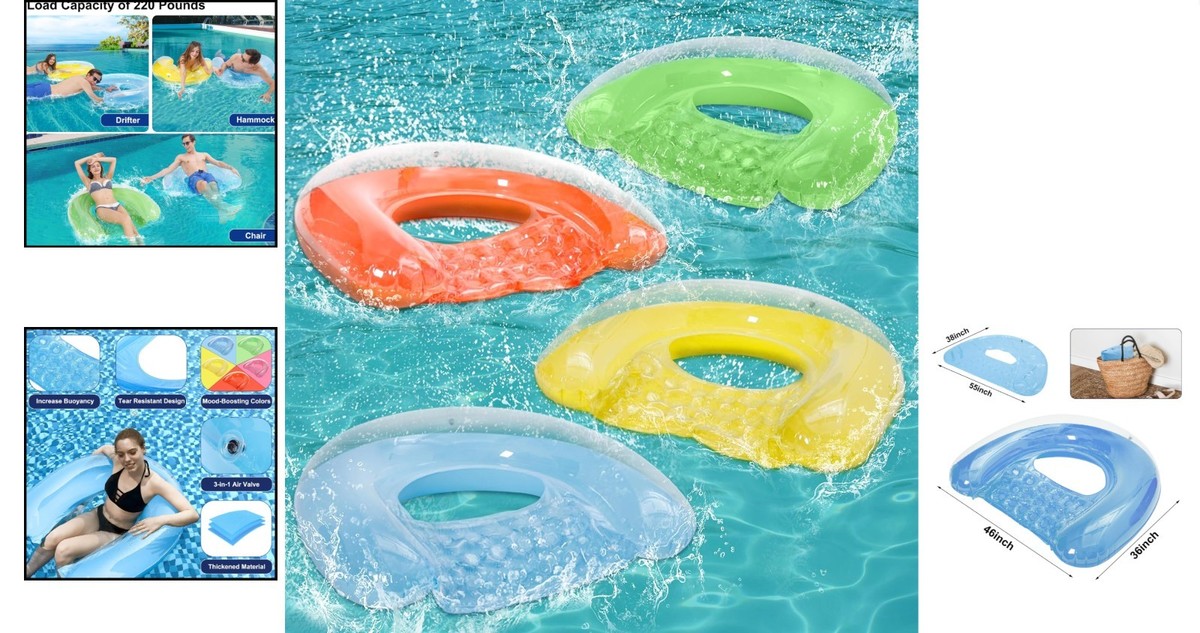 Transform your summer relaxation into a colorful oasis with our 4-Pack XL Pool Floats. Engineered for safety and comfort, these U-shaped chairs redefine your lounging experience, allowing you to float and soak in the sun while staying stylishly supported.