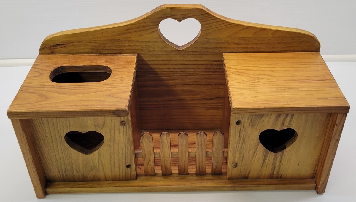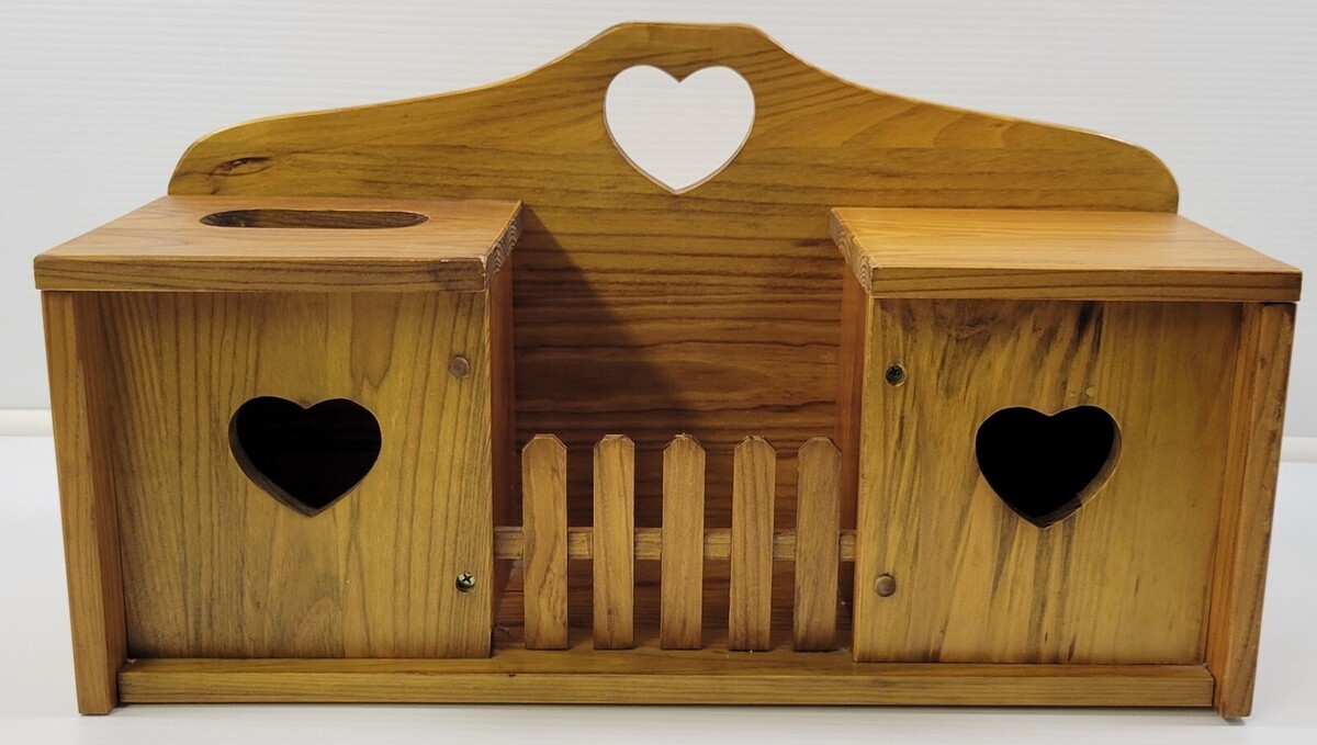 Vintage Wooden Bath Tissue Box Toilet Paper Holder Wall Mount Rack Country Heart