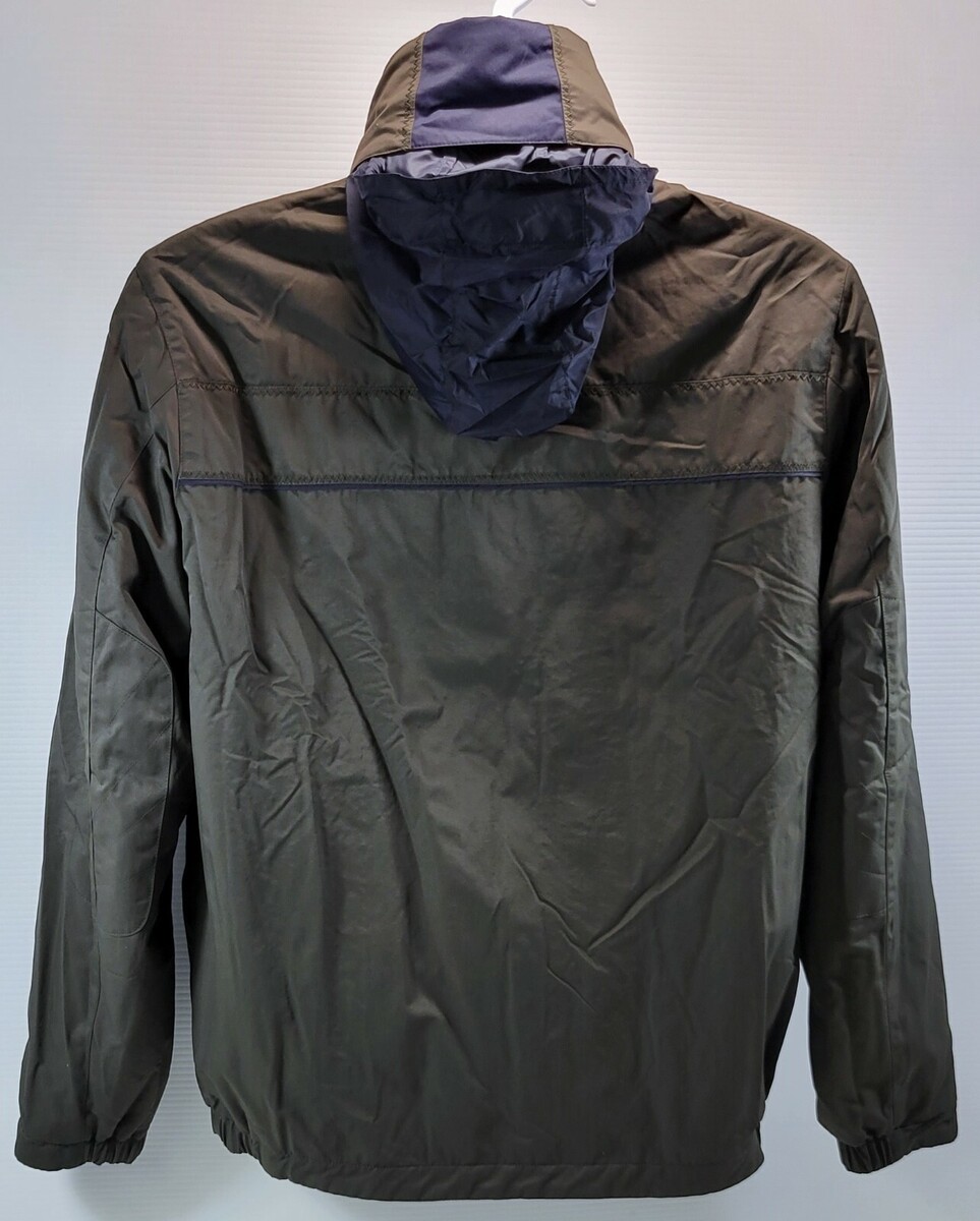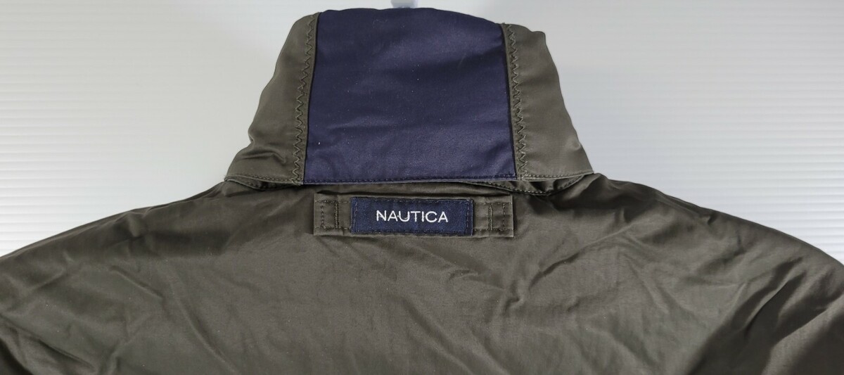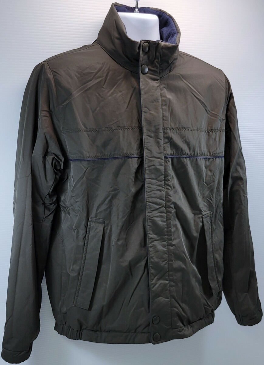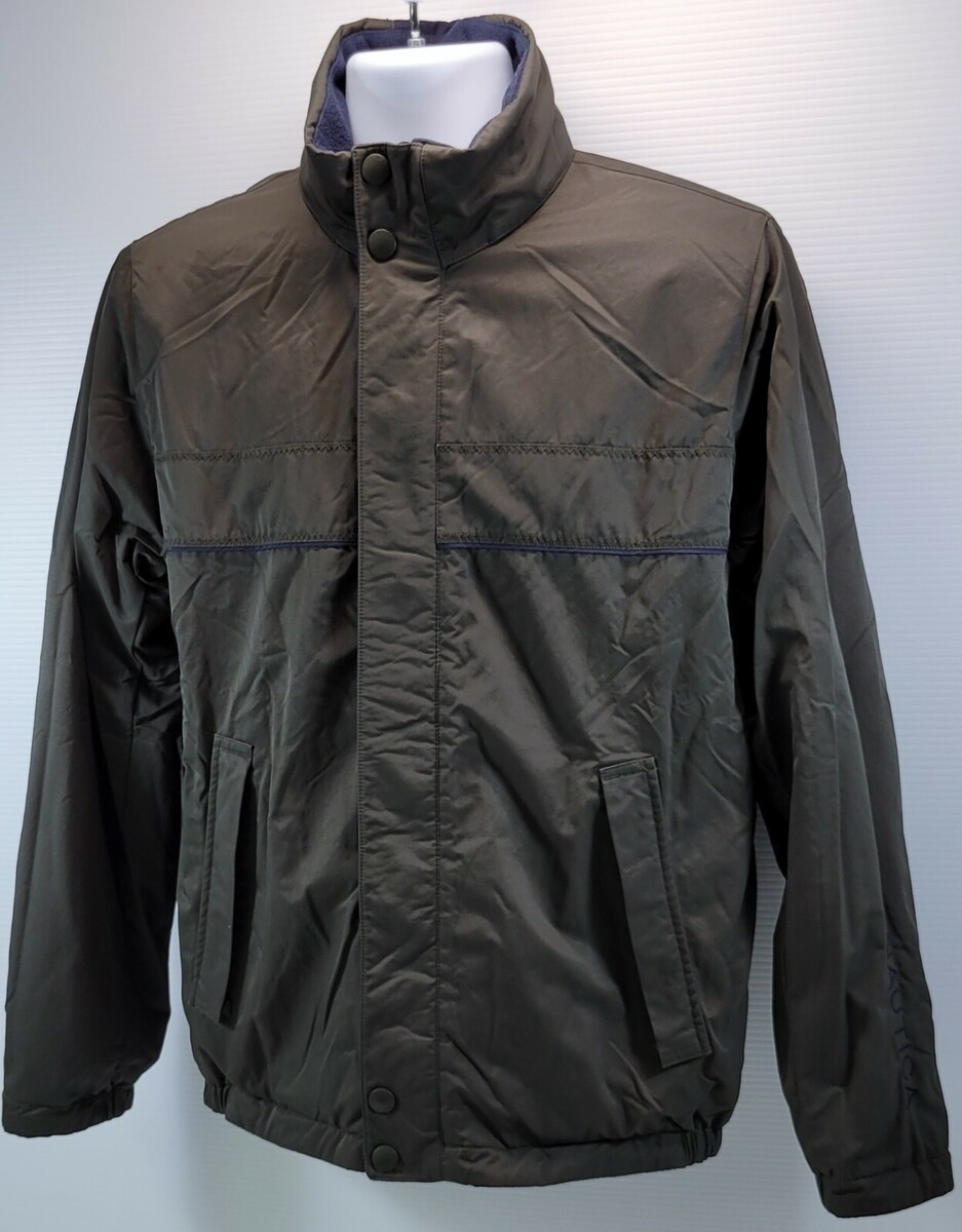 F7) Vintage Nautica Reversible Jacket Nylon Olive Green and Blue Fleece Small