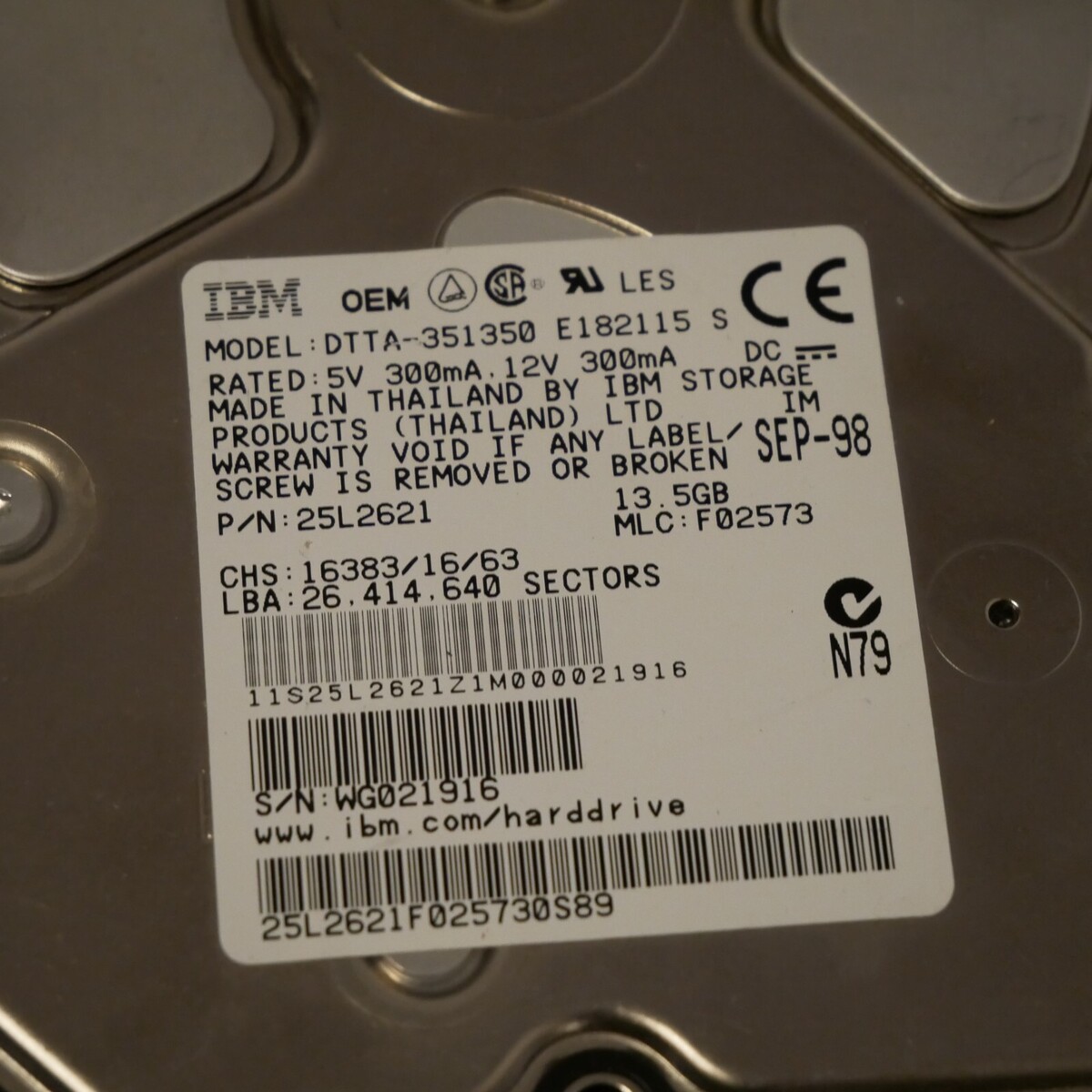 IBM 13.5 GB IDE 3.5 in. Internal Desktop Hard Drive DTTA-351350 - Tested 04