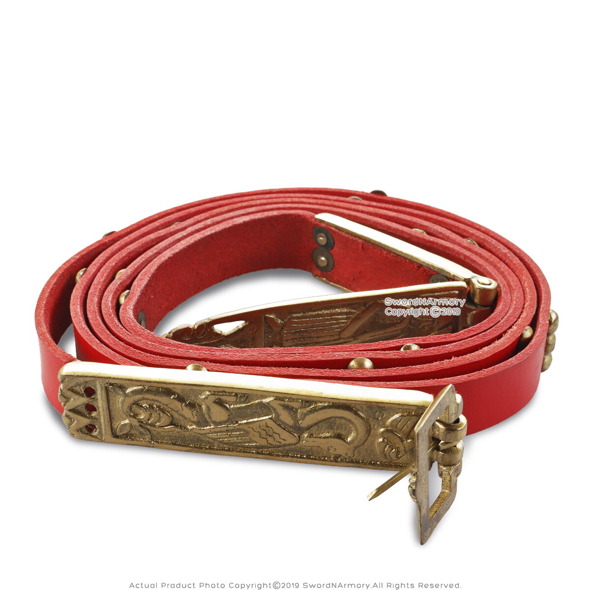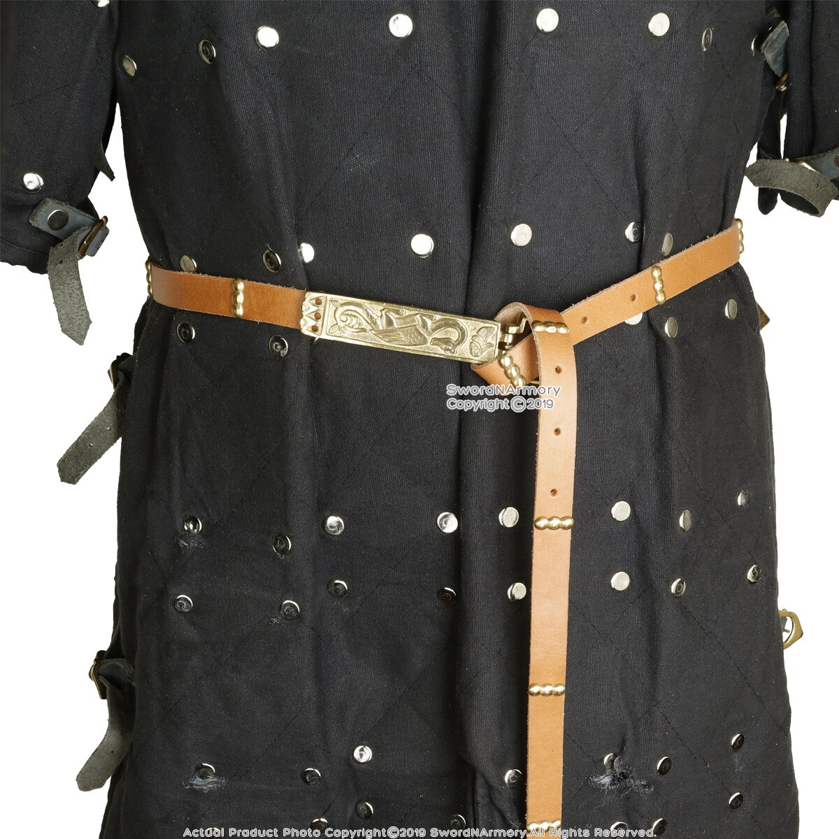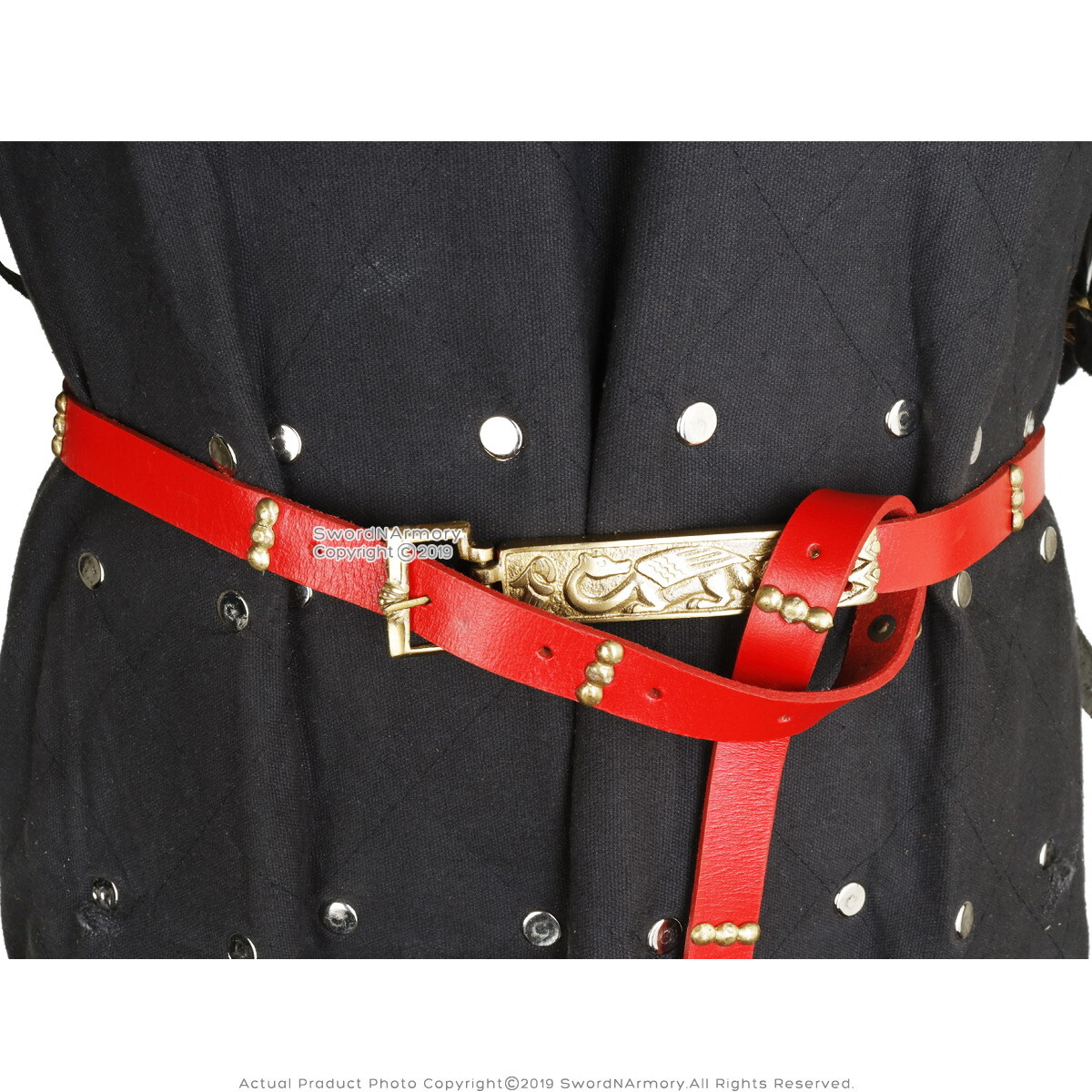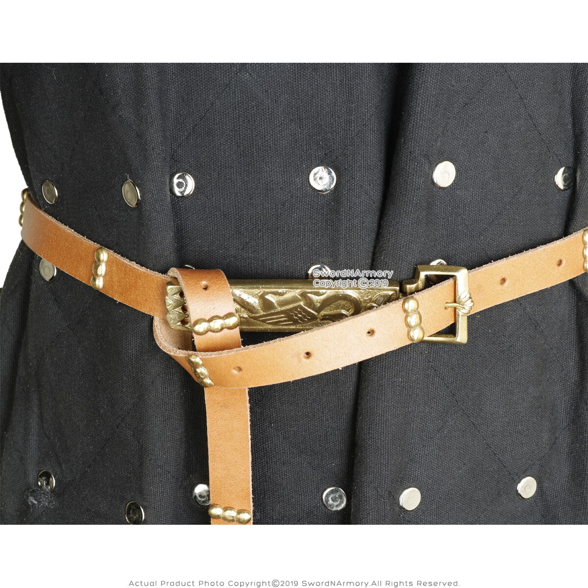 Medieval Leather Belt with Brass Buckle and Hinged End Genuine Leather Studded