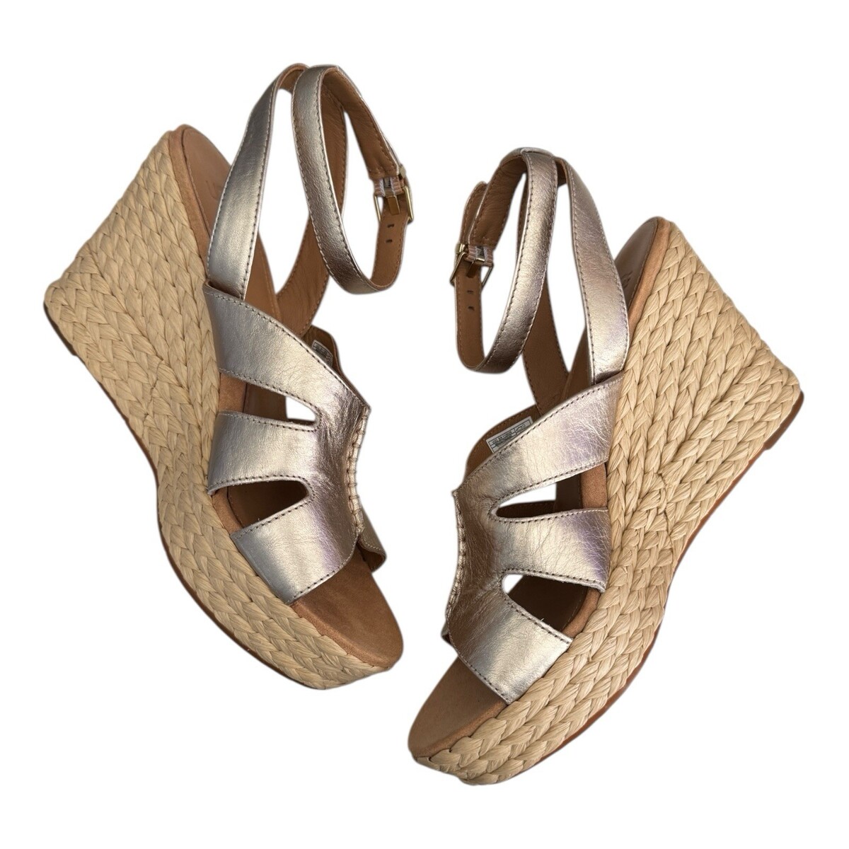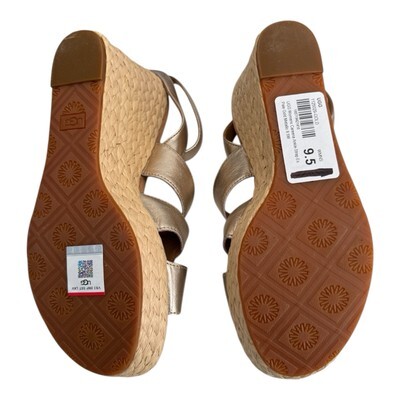 UGG Careena Ankle Strap Wedge Sandals 1125209 Women’s 9.5 Pale Gold Metallic