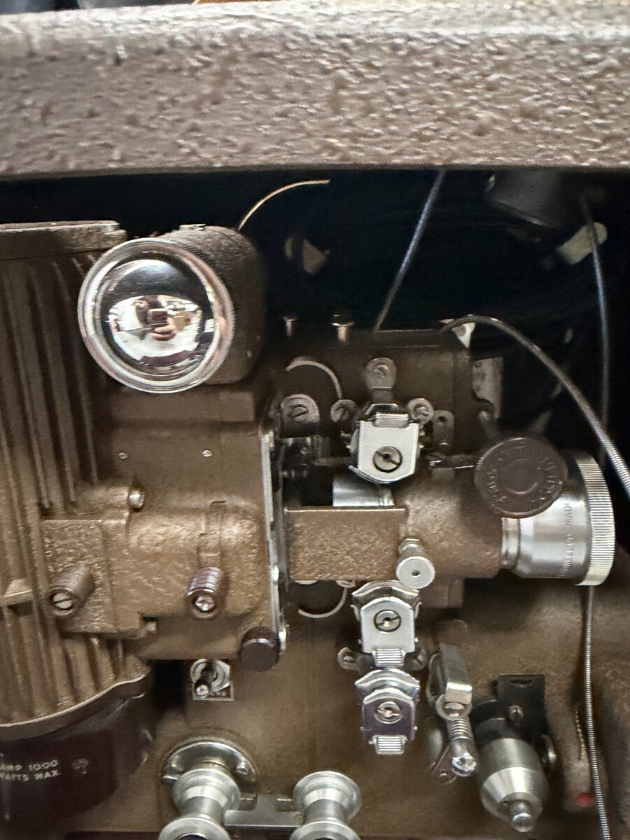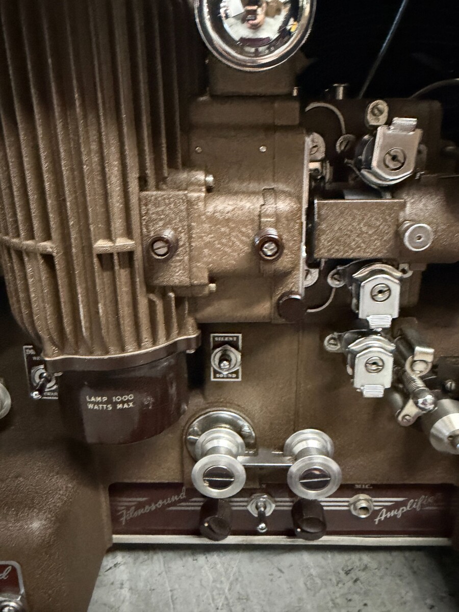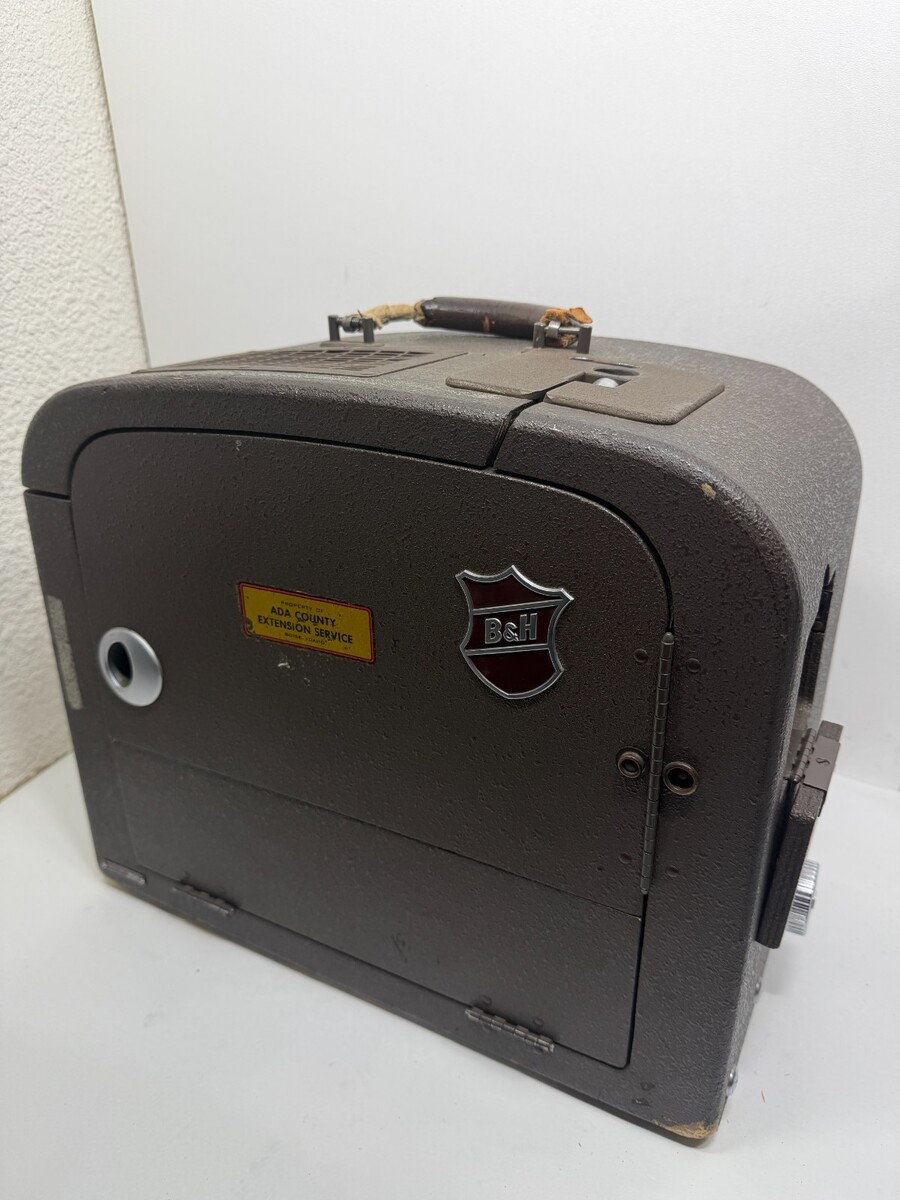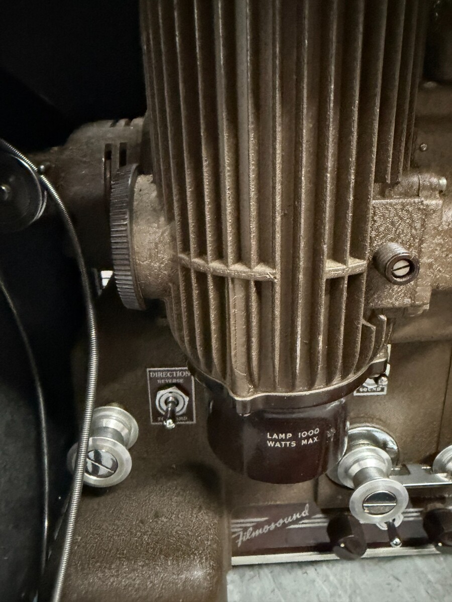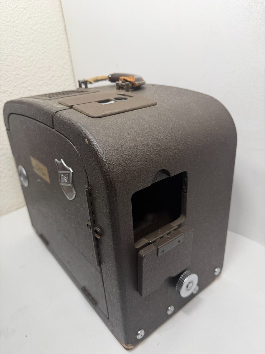 Classic mid-century projector known for its heavy-duty construction and desirable tube amp section.