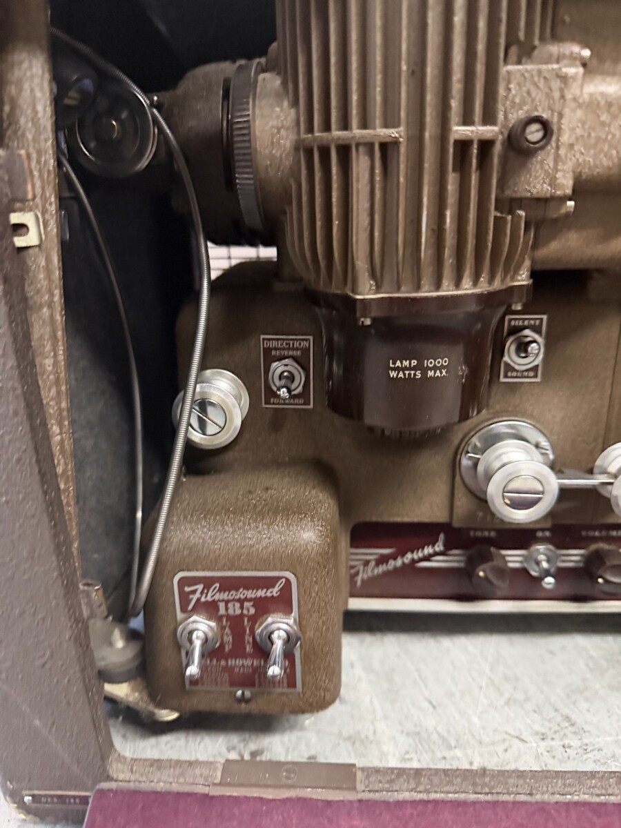 Vintage Bell Howell Filmosound 185 16mm film projector with built-in tube amplifier.