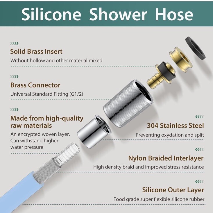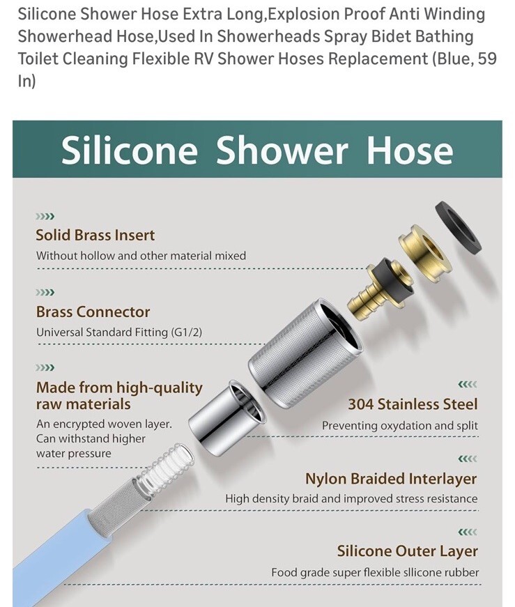 Jasya Silicone Shower Hose Extra Long, Explosion-Proof, Anti-Winding, 59-inch