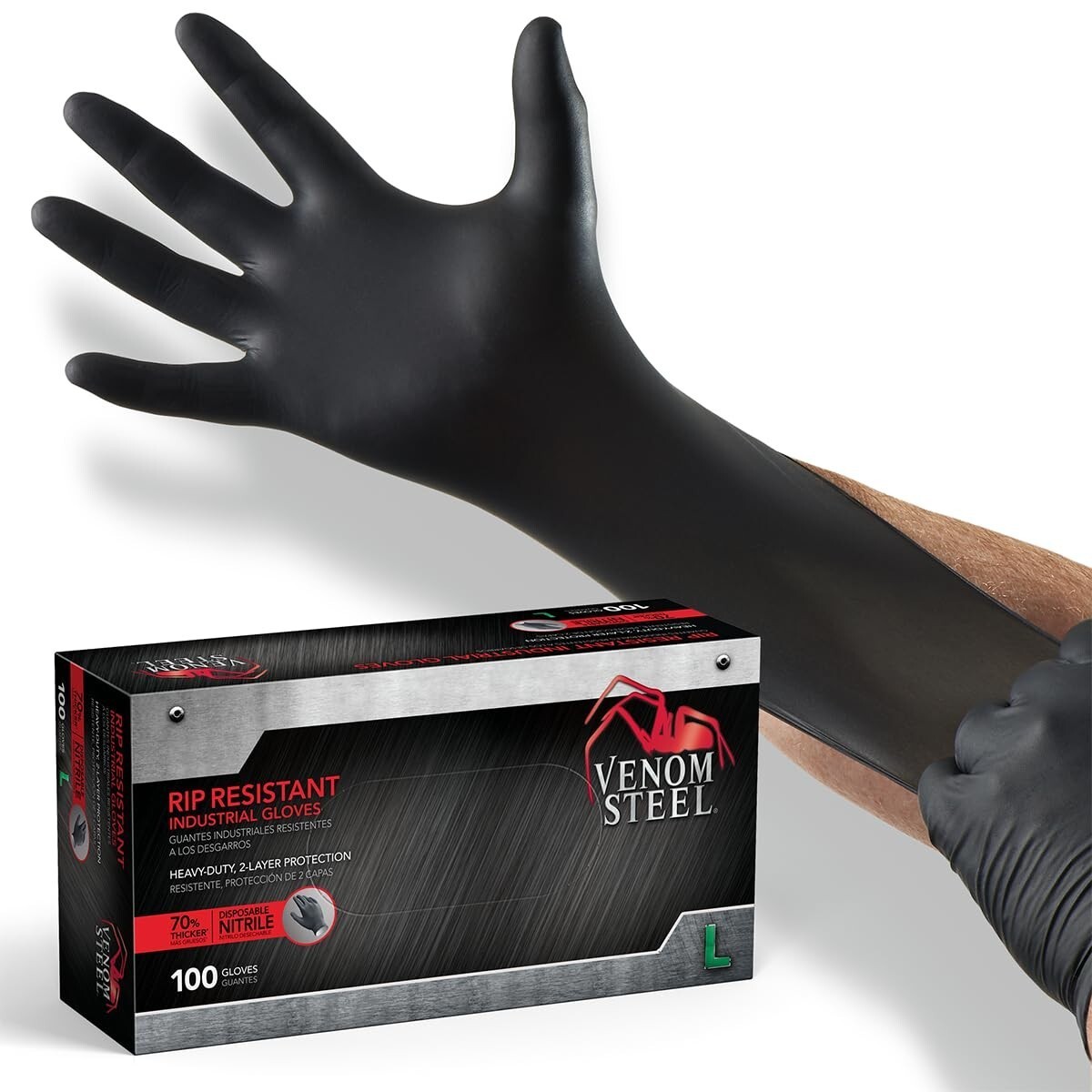 Large Black Disposable Nitrile Gloves, 6 Mil - Ultimate Protection, 100 Count