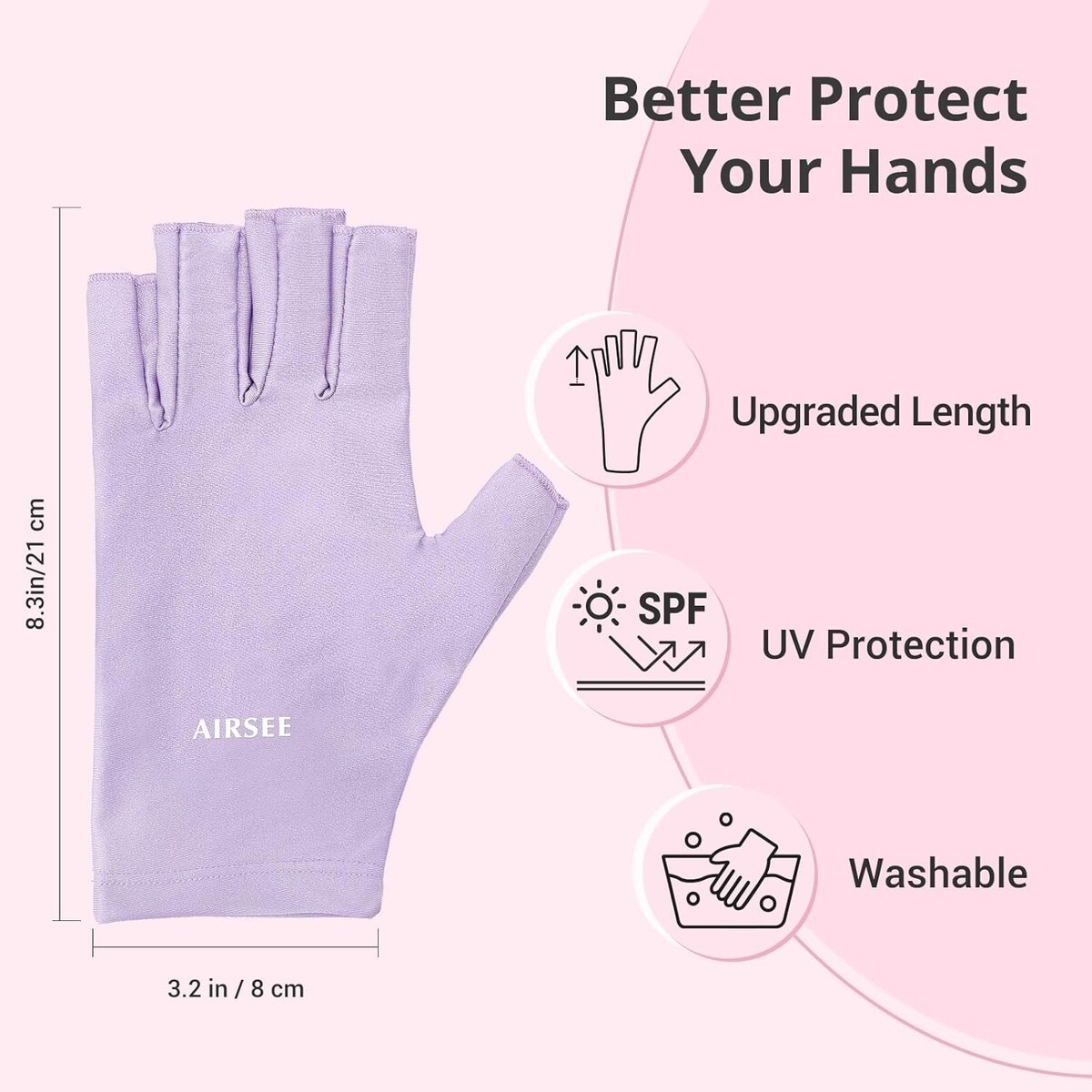 Designed to block 99% of harmful UV rays, protecting your hands from sunburn, darkening, and aging caused by UV light exposure during manicures.