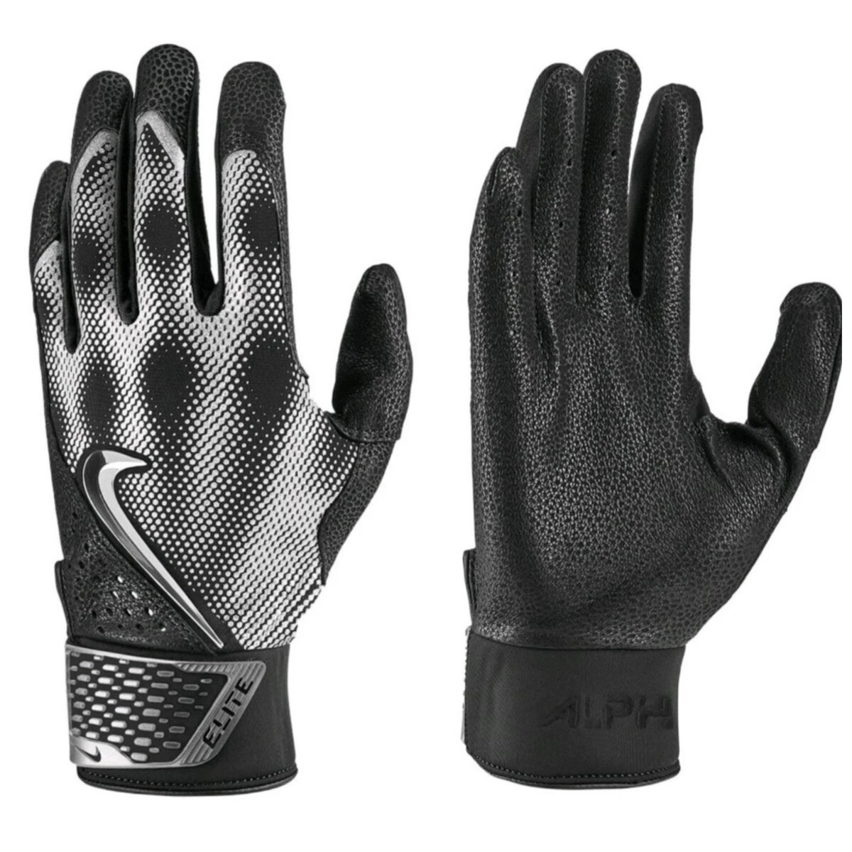 Nike Alpha Varsity Batting Gloves Mens Large Black Silver Baseball