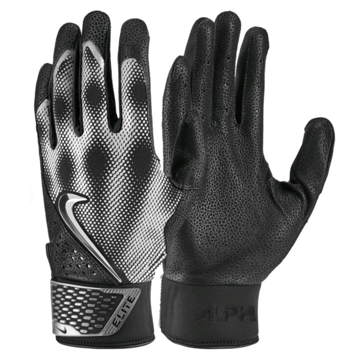 Step up your performance with Nike Alpha Varsity Batting Gloves, built for comfort, durability, and consistent grip at the plate. Featuring a sleek black and silver design, these gloves deliver a clean, athletic look while supporting performance during games and practice.