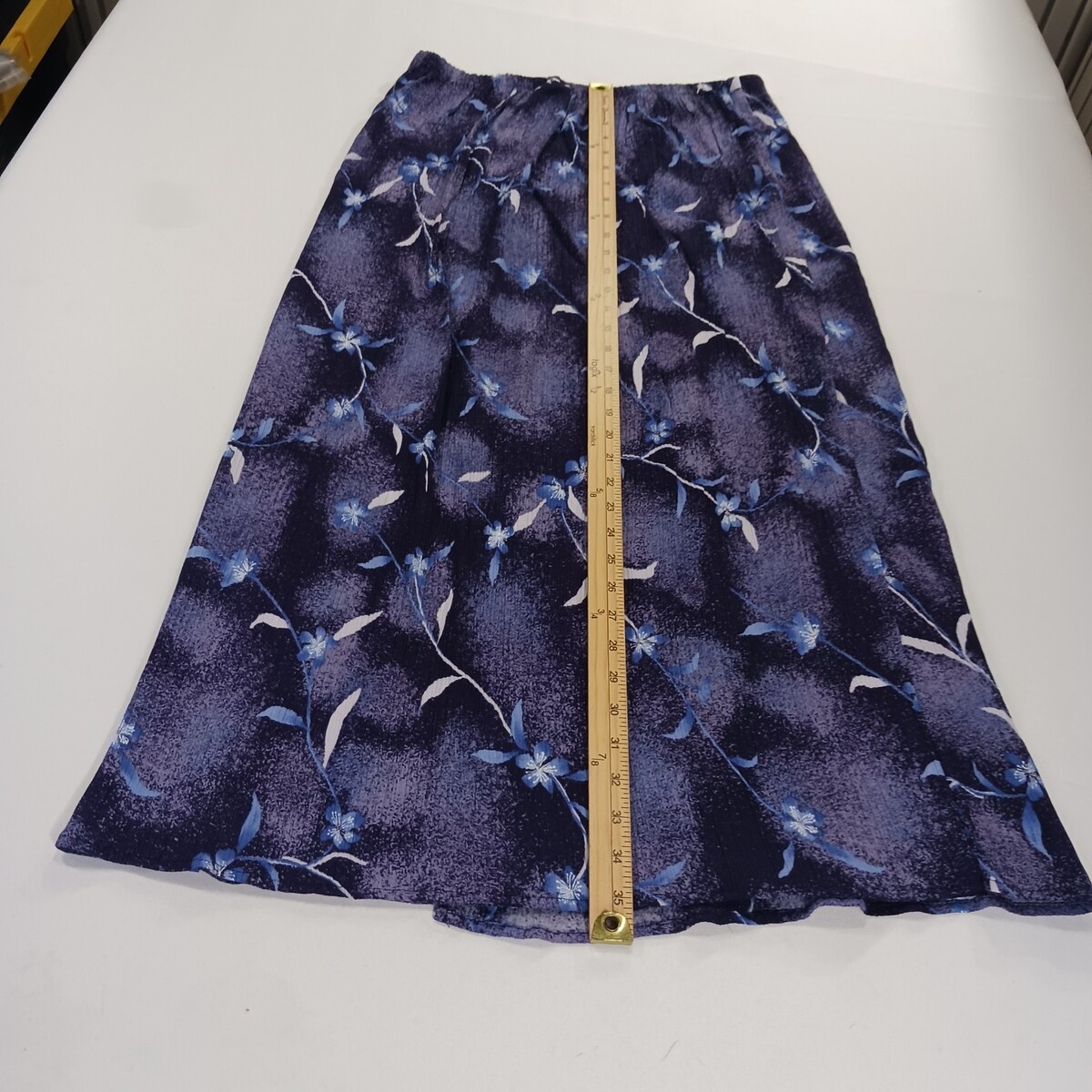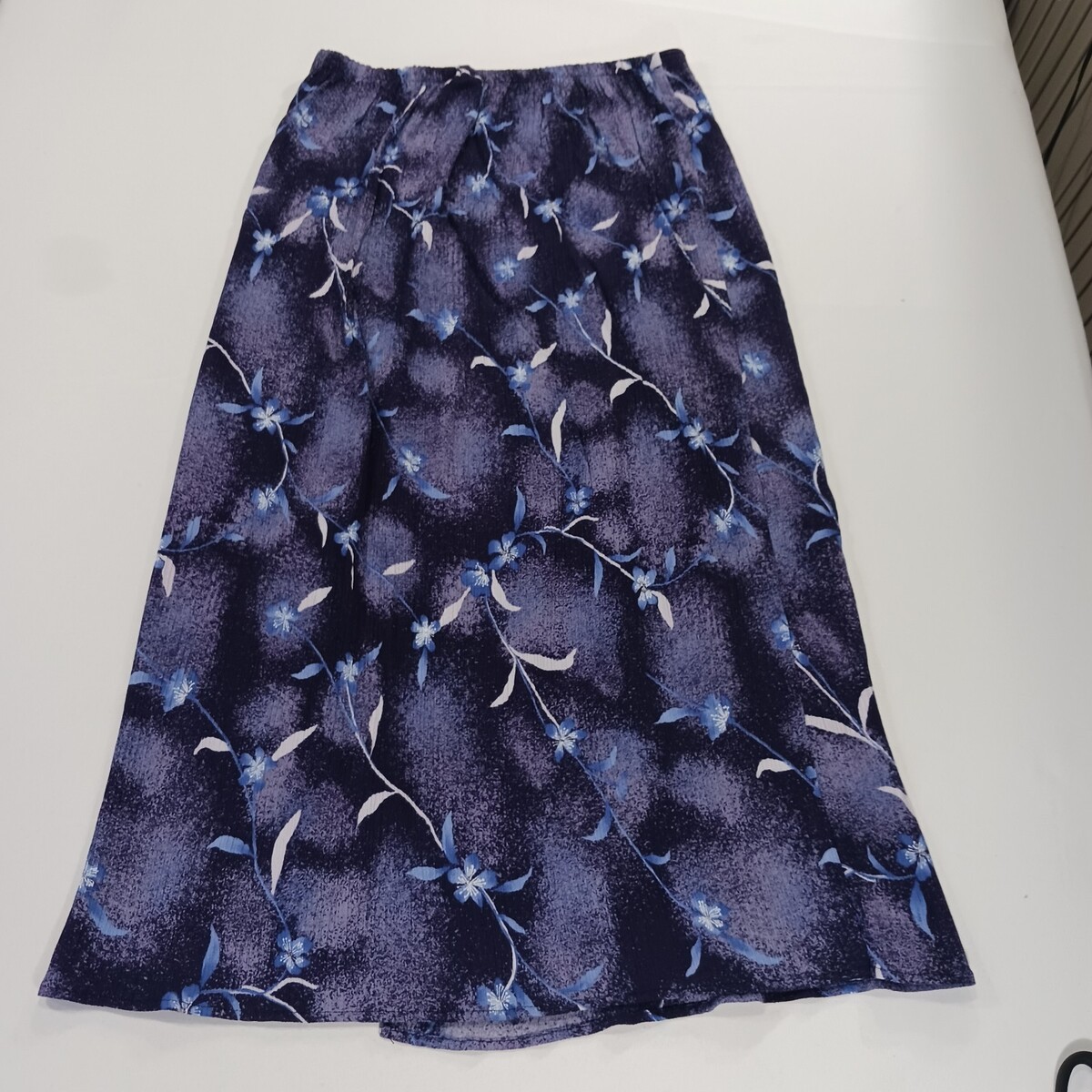 The Vintage Ship n Shore RN#86464 Women's Purple Floral Half Wrap Midi Skirt in size XL is a retro-inspired piece perfect for a casual occasion. Made of polyester, this original piece has a rockabilly look and is designed with a 30-inch waist size. With its half wrap design and midi length, this skirt captures the charm of a bygone era, making it a unique and stylish addition to any wardrobe.