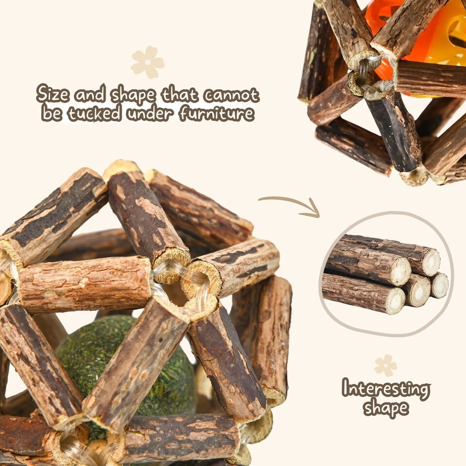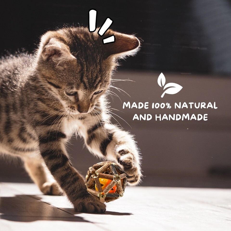 10 Natural Catnip & Silvervine Chew Sticks + 2 Pack Interactive Cage Ball Toy