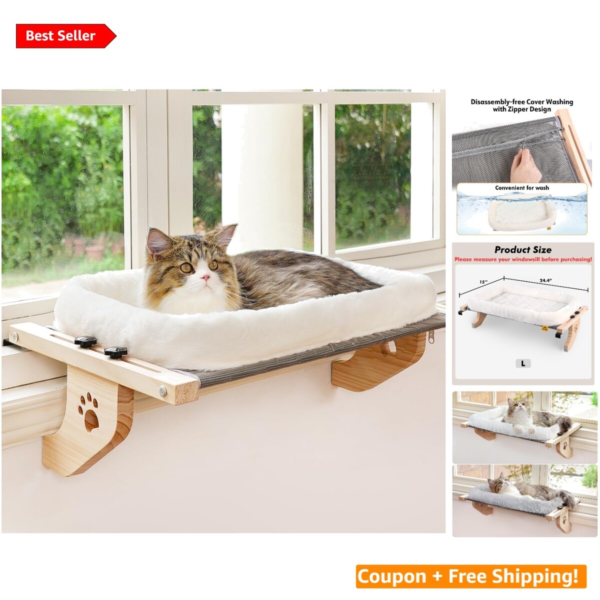 Features: Comfortable Cushion Bed Cover,Easy to Adjust Windowsill,Simple Assembly,No Drilling Installation,Suction Cups Not Needed