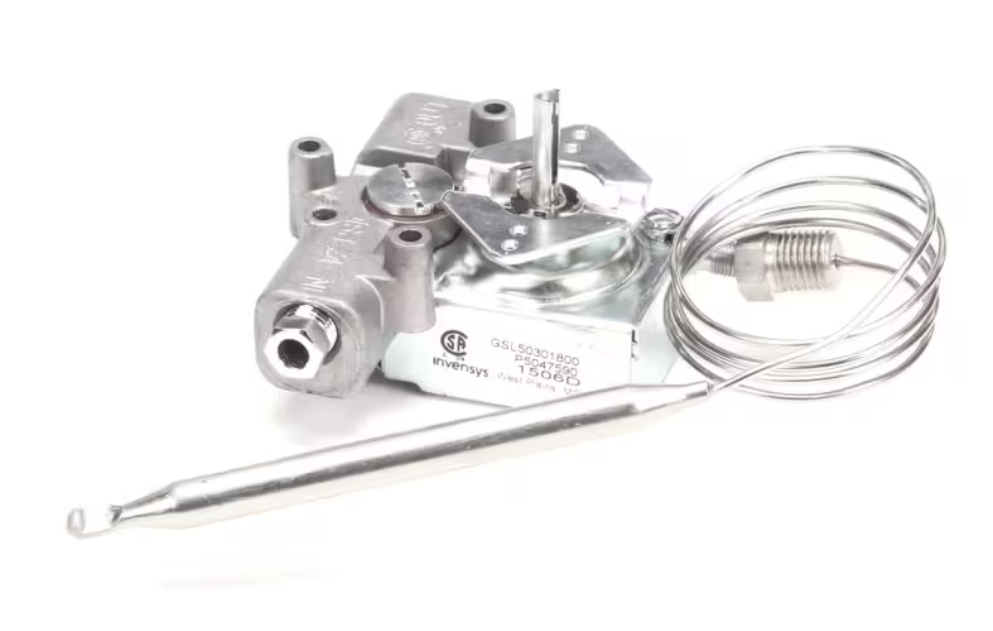Pitco GSL50301800 / P5047590 Gas Thermostat GS, 190C is a high-quality OEM temperature control component designed for precise heat regulation in commercial gas cooking equipment. This thermostat ensures accurate temperature control at 190C, helping maintain consistent cooking results and safe operation. Built for durability and reliability, it is an essential replacement part for restoring optimal performance in professional kitchen environments.