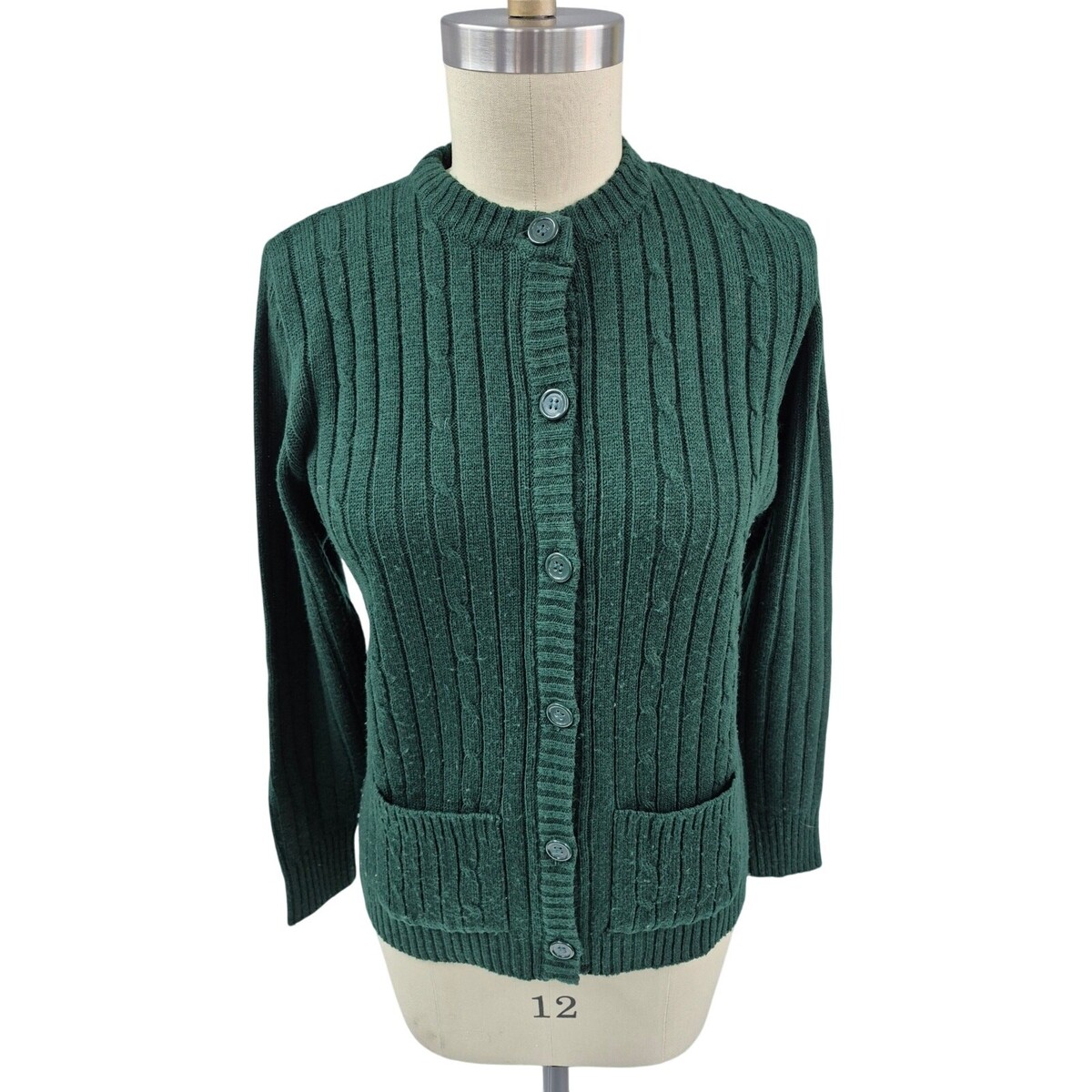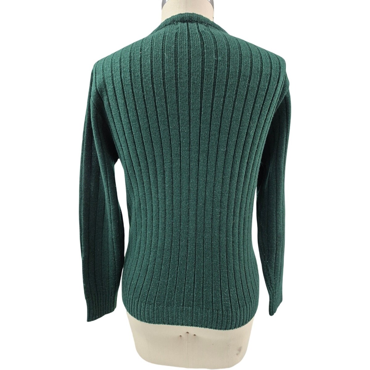 VTG 1970s Sears Acrylic Ribbed Button Sweater Forest Green Womens L Made Korea