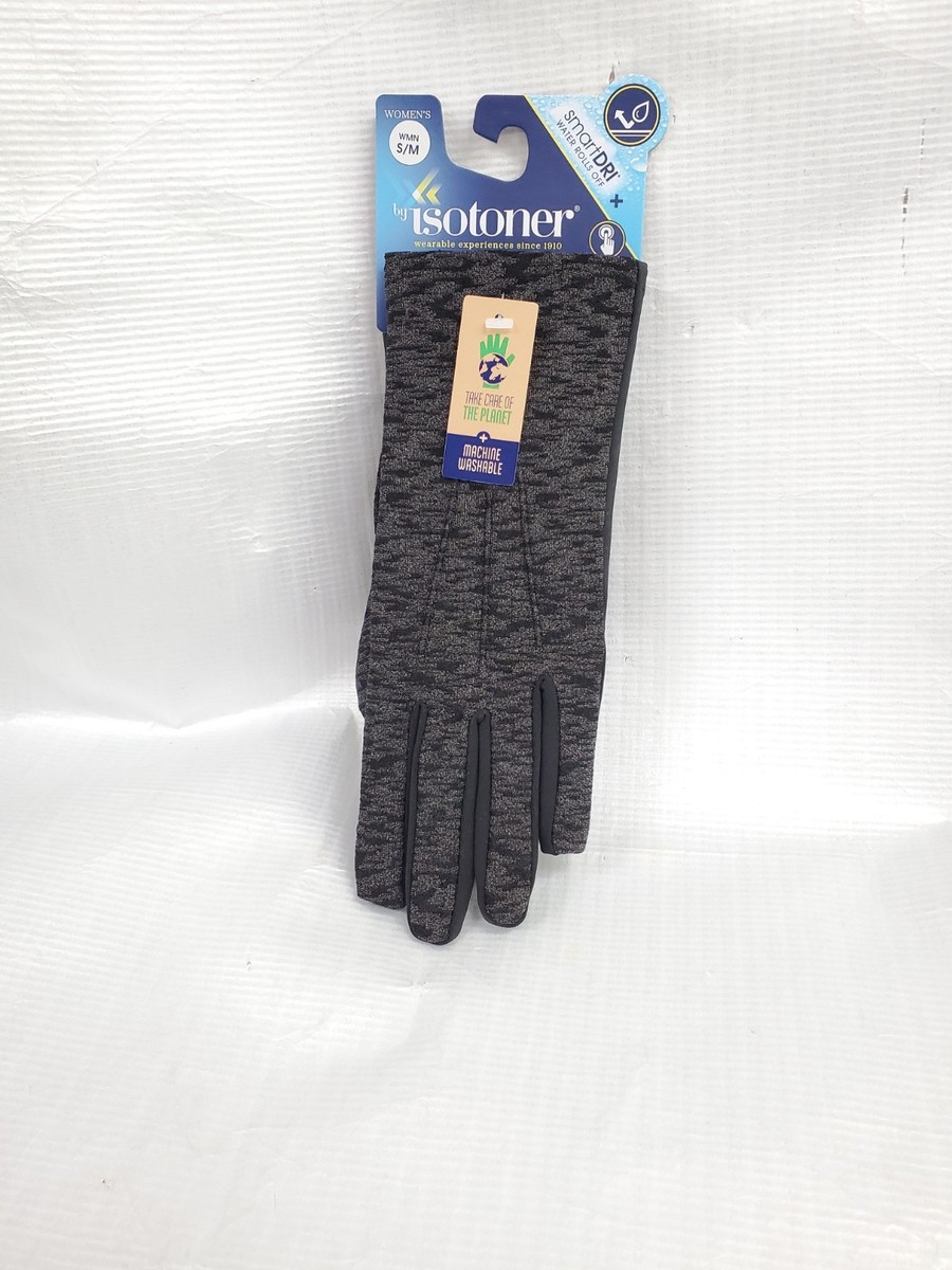 Isotoner Adult S/M Black Space Dye Spandex Gloves Smartouch SmartDri