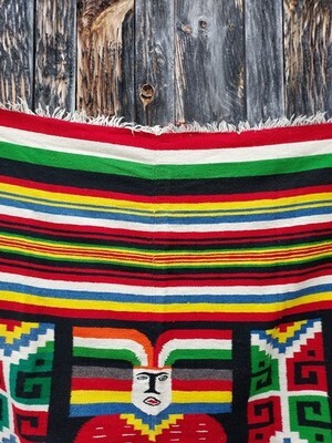 Vintage Mexican Mexico Woven Wool Serape Aztec God Goddess Blanket 54x72