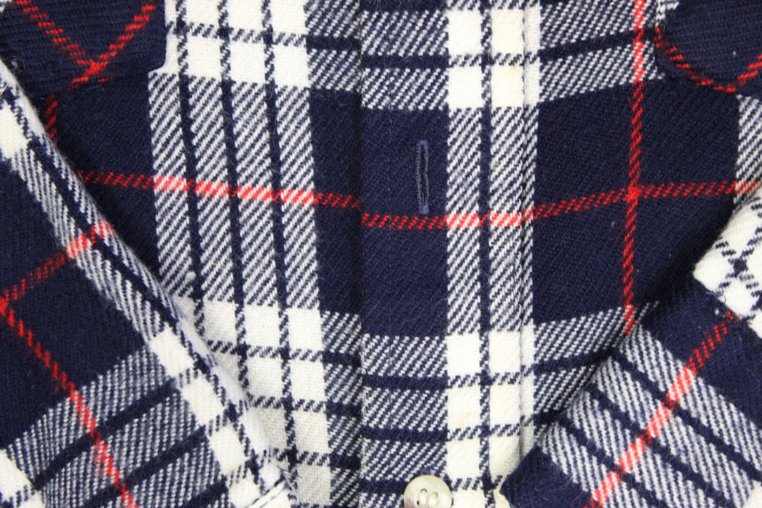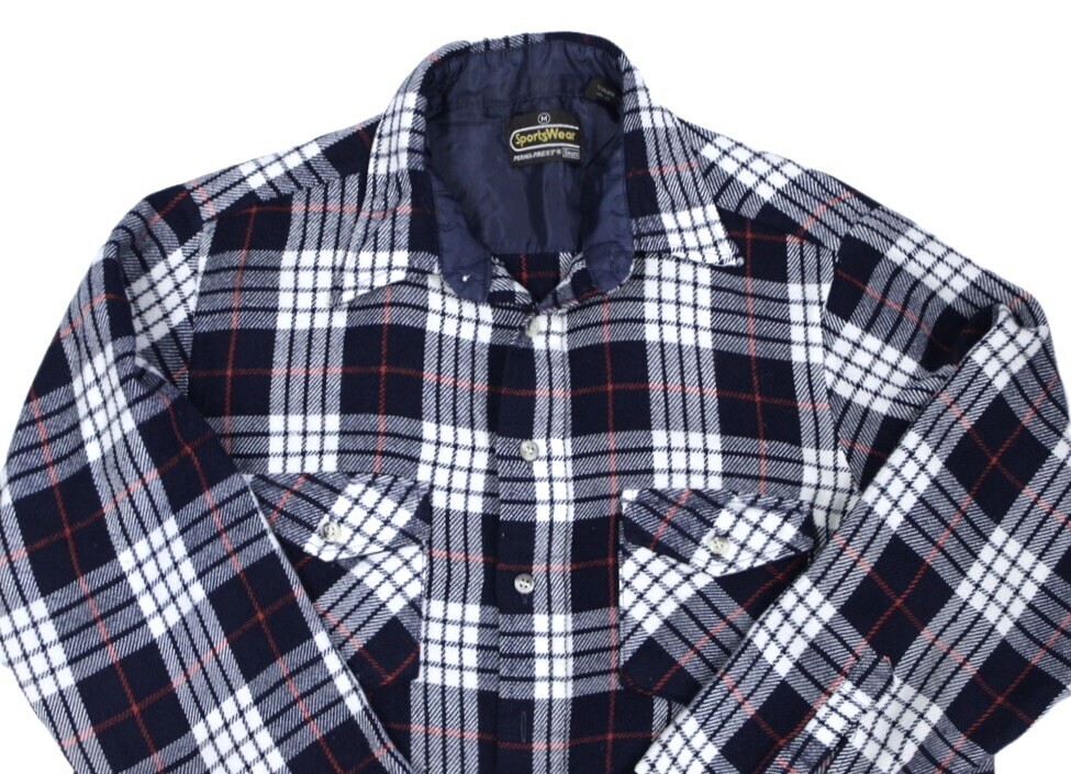 Sears was a household name for American fashion basics throughout the 20th century, offering reliable, affordable clothing. By the 1980s, their flannel shirts became wardrobe staples, later embraced in the 1990s as part of the grunge movement. Acrylic flannels from this era remain collectible as accessible Americana and are valued for their retro plaid patterns and cultural crossover.