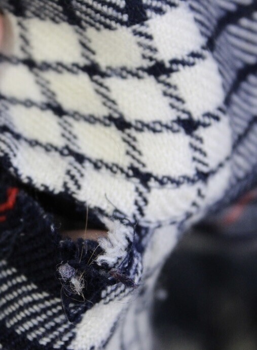 Very good vintage condition overall. One cuff shows a stain and another has a small tear (see photos). Both flaws are minor and can be cleaned or repaired, or simply worn rolled for a casual grunge look.
