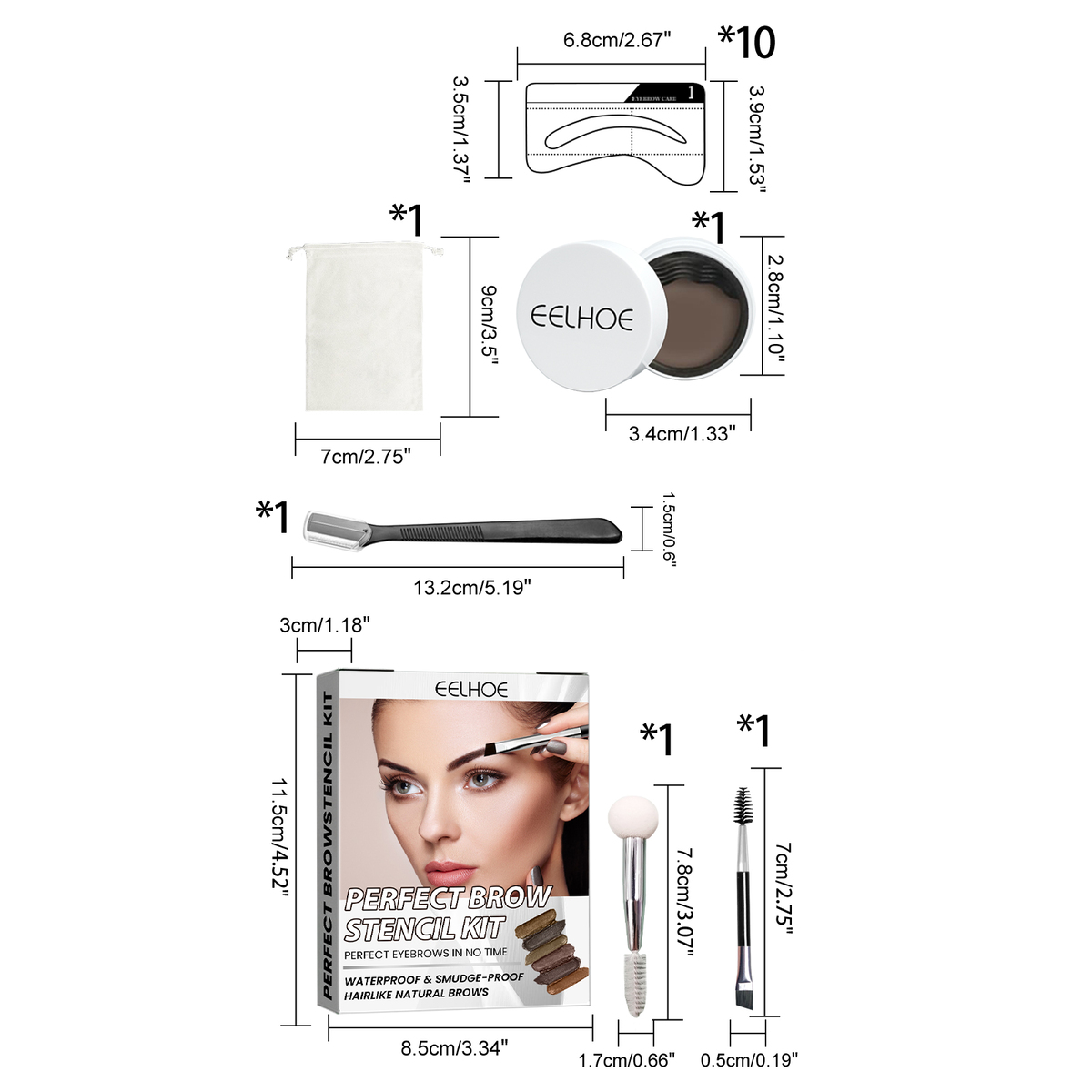 EELHOE Perfect Brow Stencil Kit, Waterproof Smooth Easy Color No Smudge No Makeu