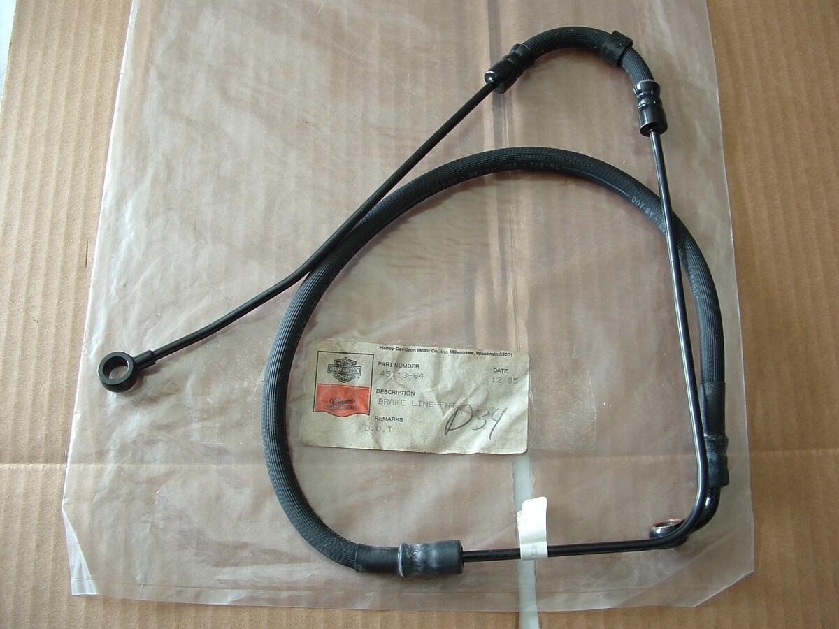 OEM Harley Davidson FRONT brake line. New old stock part (NOS) Part number 45113-84. Google tells me this fits 1984 thru 1986 FXWG wide glide. But check with your dealer to verify. Be sure this will work for you. Never installed part ready to go.