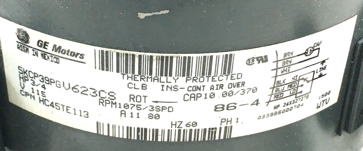 Ge 5KCP39PGV623CS Blower Motor 3/4 Hp 115V and 50 similar items