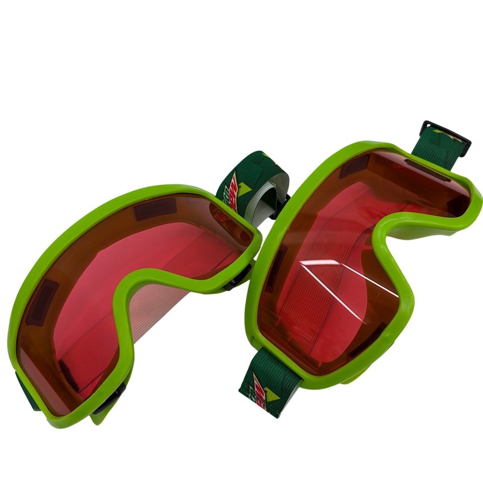 Lot of 2 Mountain Dew Promotional Ski / Snowboard Goggles Green with Red Lenses