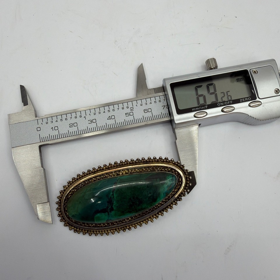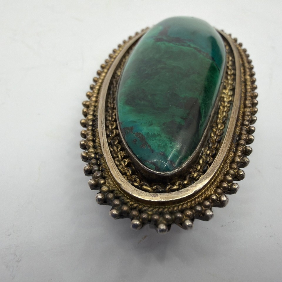 Vintage Israel 925 Sterling Eilat Stone Brooch Pendant Large Oval