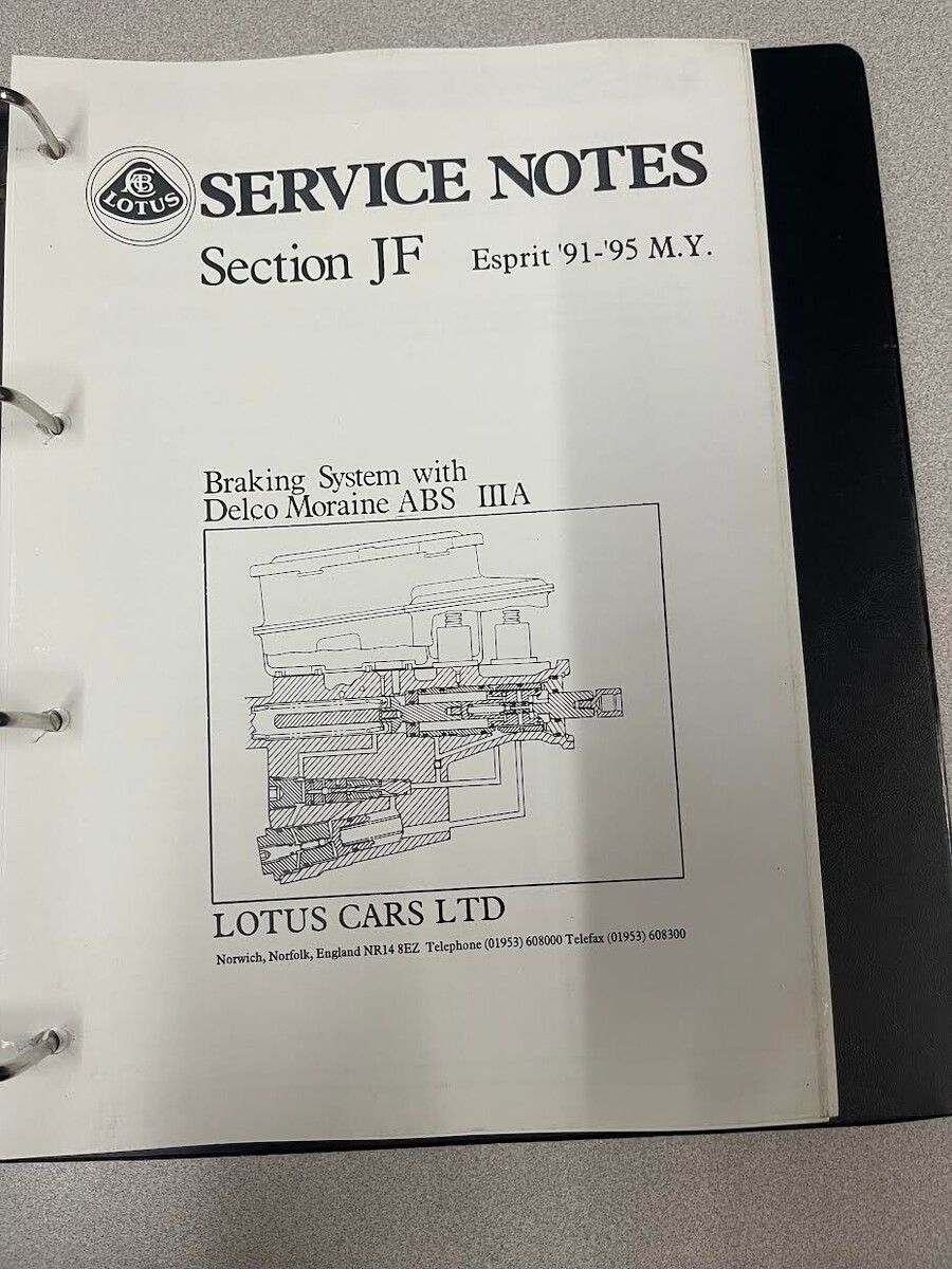 Lotus Auto USA Formazione Course Notes Esprit 91 My Frenata Sistema Delco