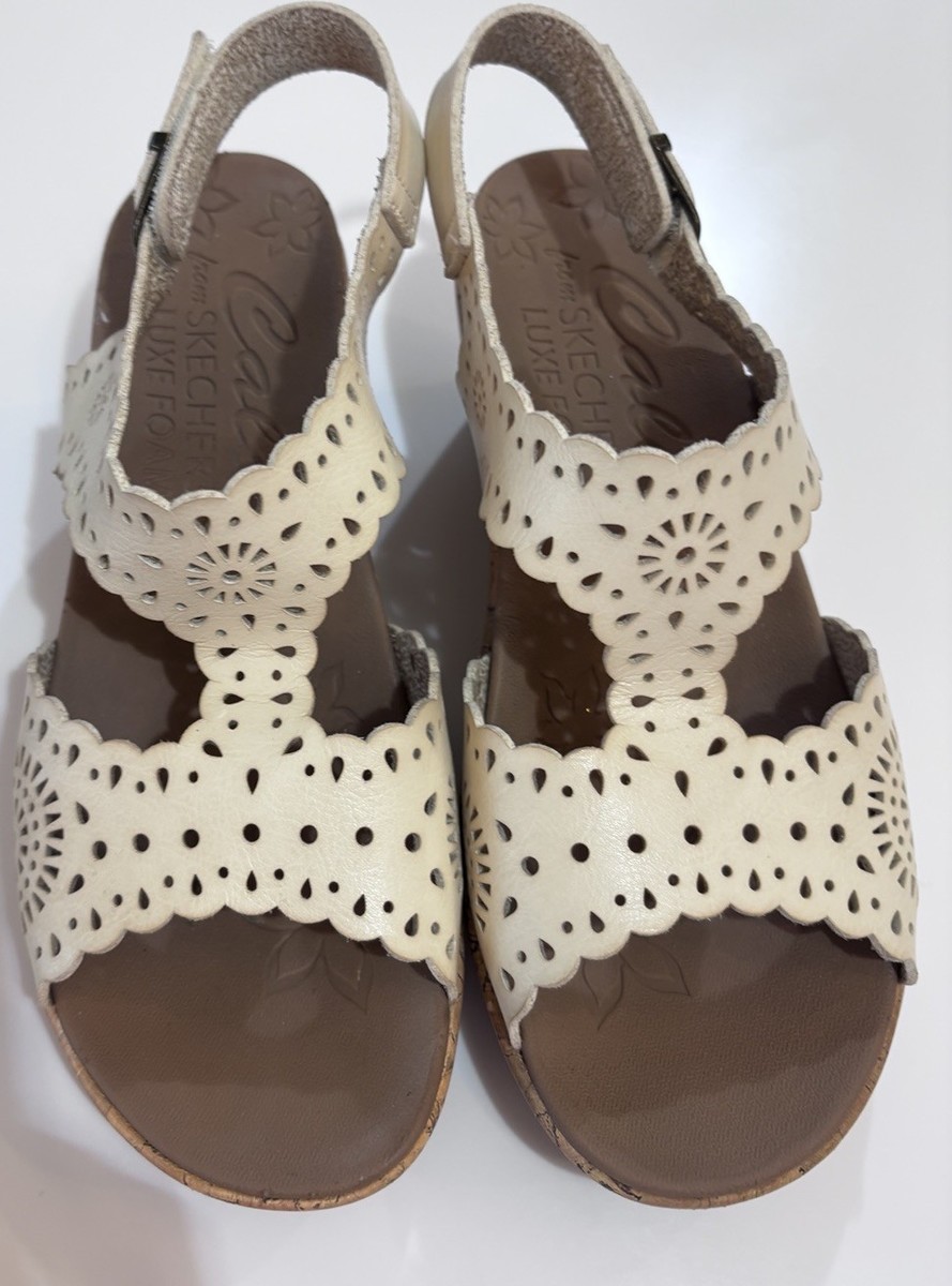 Skechers Beverlee Easy To Adore Wedge Sandals Cali Foam Women’s White 7.5