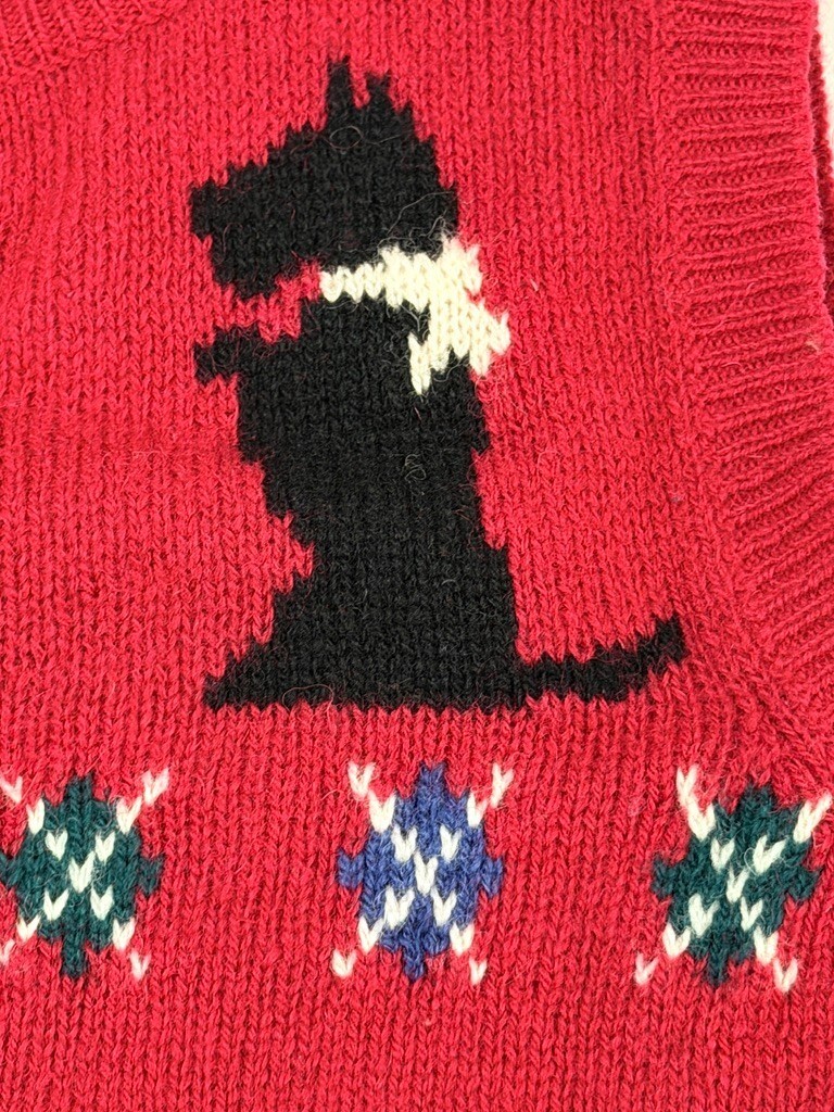 VTG 1980s Robert Scott Ltd. Red Wool Sweater w/ Black Scotty Dogs Sz 34 S