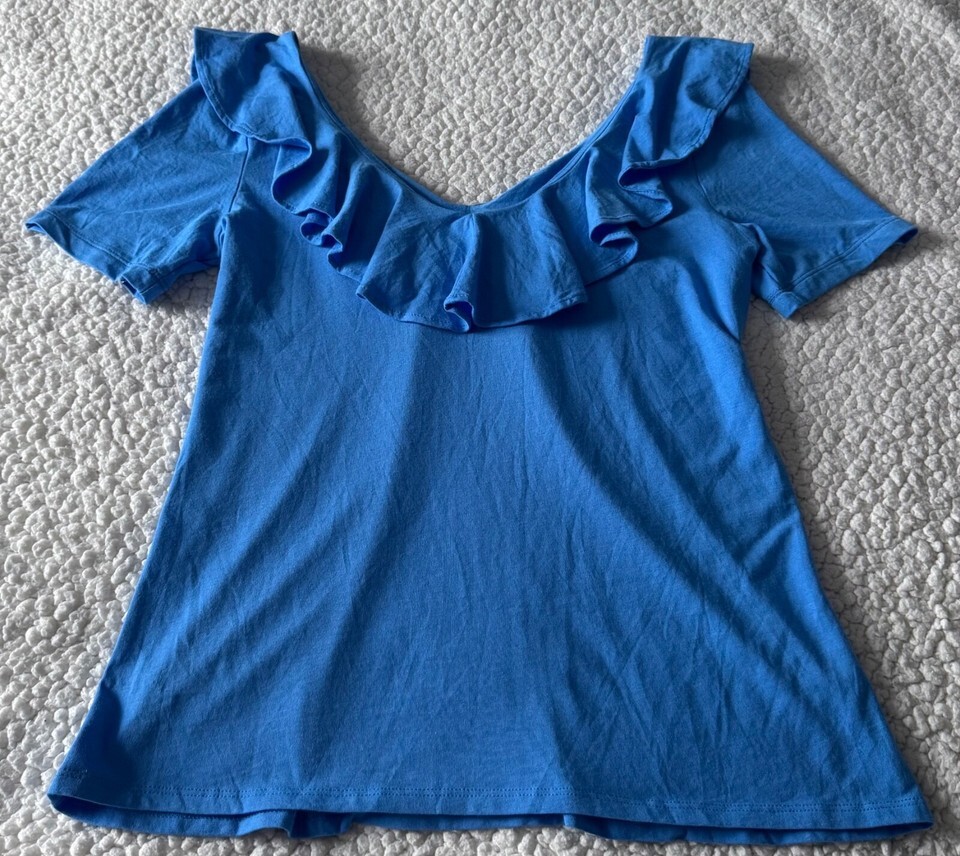 Lilly Pulitzer Short Sleeve V Neck Ruffle Tank Top Royal Blue Size Small NWOT