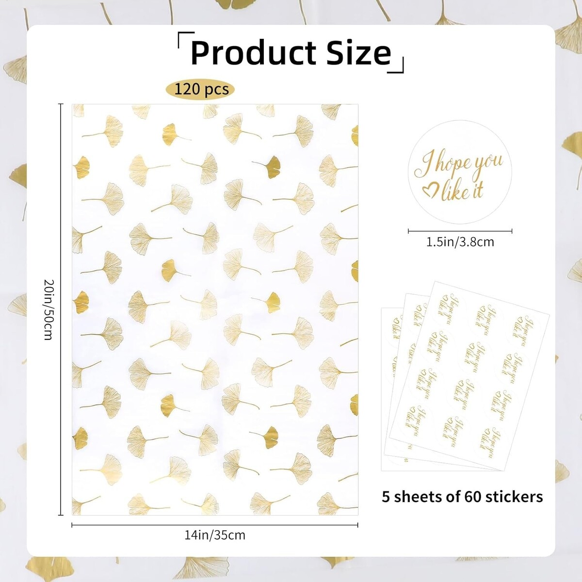 Elegant 120-Sheet Gold Ginkgo Leaf Tissue Paper with Stickers