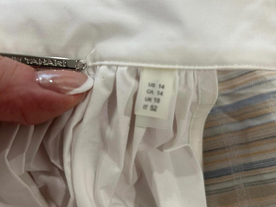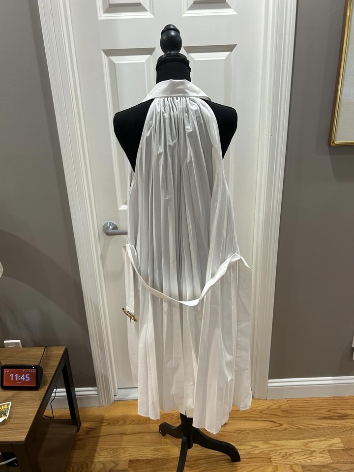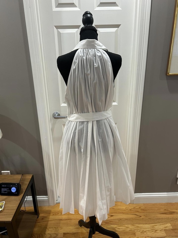 Elie Tahari White Sleeveless Pleated Dress with Collar and Belt