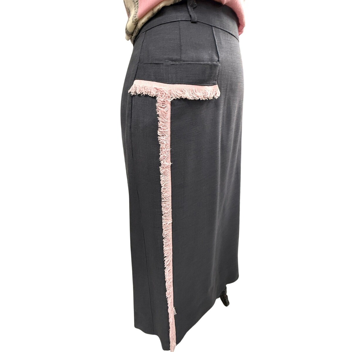 Vintage 1940s/50s Gray Linen Pencil Skirt - Asymmetric Pink Fringe Detail - 6/S