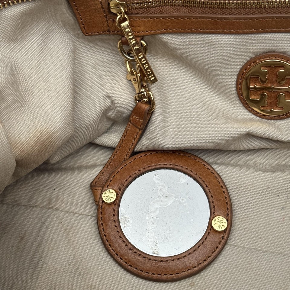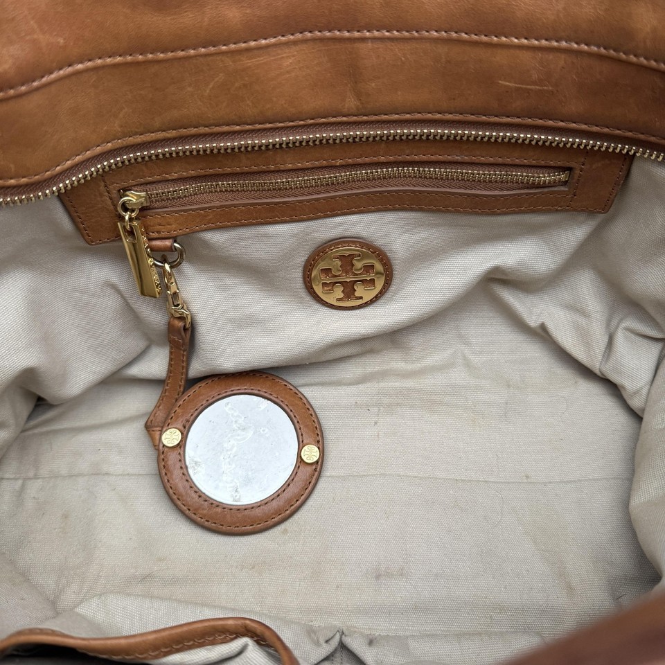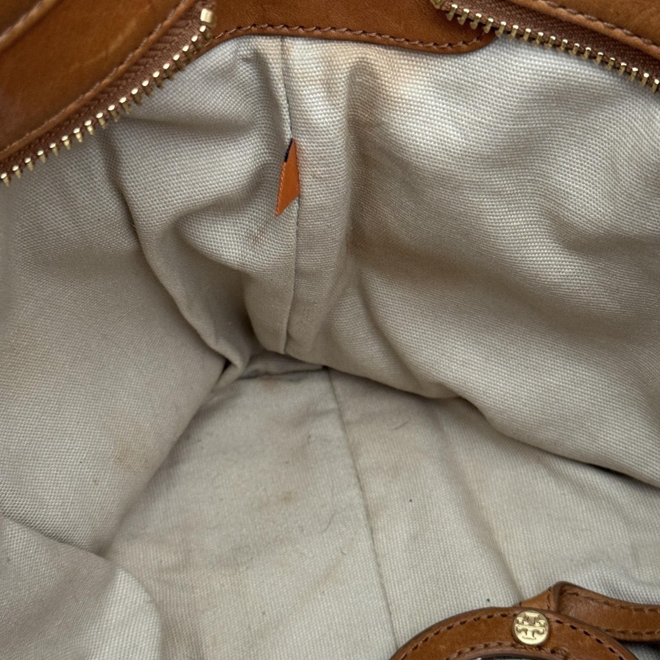 Tory Burch Bombe Leather Tote Bag Brown Shoulder Bag Zip Top