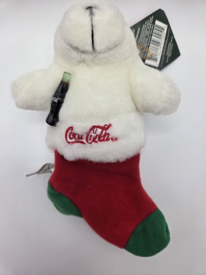 Vintage Coca-Cola Polar Bear in Stocking Christmas Tree Ornament 1995 with Tag