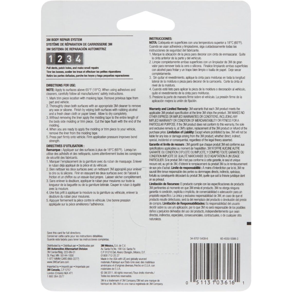 3M Super Strength Molding Tape 03616 in a 2-pack provides 30 total feet of heavy duty double-sided foam tape. Each roll measures 7/8 in x 15 ft and bonds automotive trim, moldings and emblems permanently. This weather-resistant tape is rated for -40 F to 250 F and withstands moisture, UV exposure and car washes. The conformable foam core adheres to textured surfaces and helps reduce vibration. The tape applies cleanlyacut to size, peel and press for a no-mess solution. Compatible with painted or unpainted metal, plastic, fiberglass and more. Perfect for automotive repairs, customizations and accessory installs.