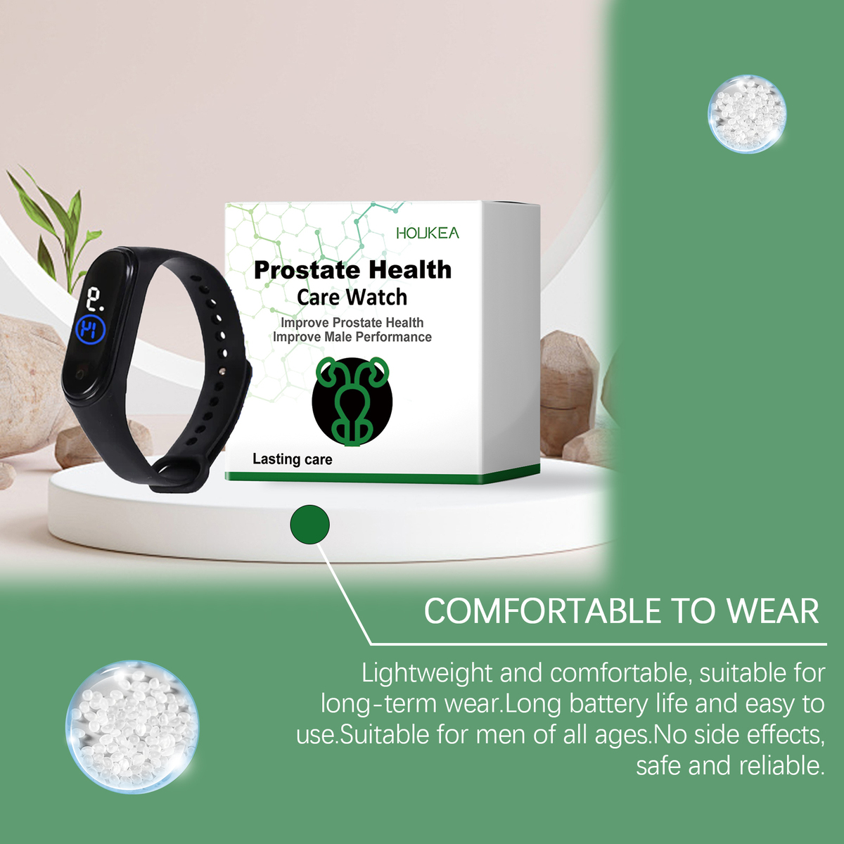 Our men"s body care watches contain plastic. It can effectively reduce prostate discomfort and improve quality of life; Continuously relieve prostate discomfort during wearing and improve comfort; Significantly enhance system function, reduce urination urgency, improve quality of life. Its use is simple: simply wear the product directly on your wrist. Promotes prostate health and improves male performance. Support better night"s sleep quality and reduce the number of times you wake up during the night.
