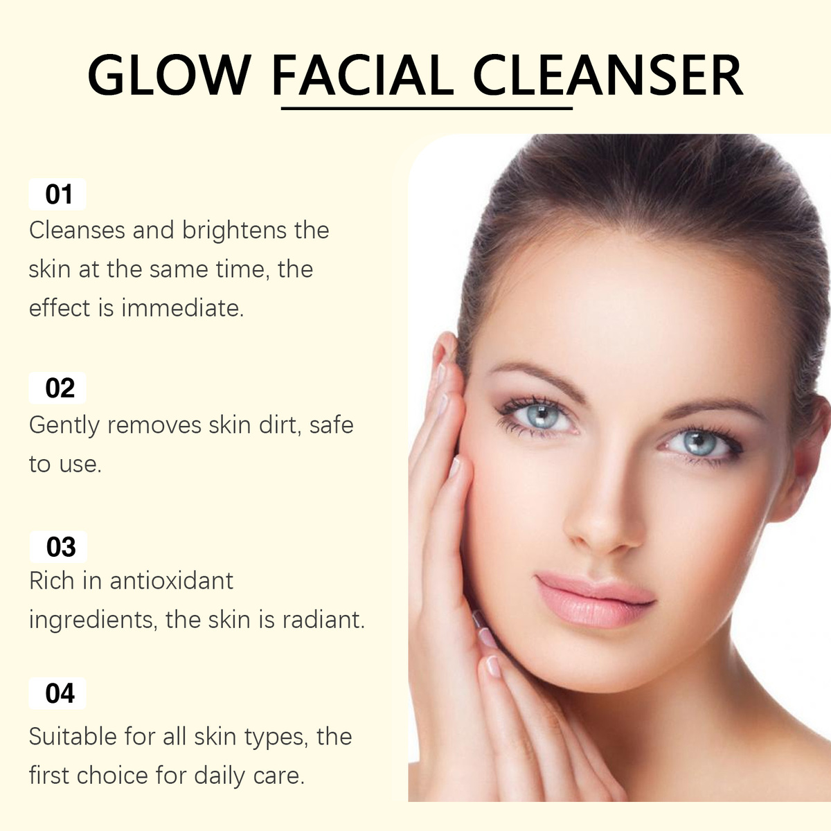 Our Vitamin C Brightening cleanser contains lemon fruit extract and vitamin C. It keeps your skin fresh and bright every day. Its use is simple: clean your hands with warm water and wet your face. Take proper amount of cleanser and rub with a little water until foaming. Use your fingertips to spread the foam evenly over your face. Rinse with water. And can easily remove facial oil stains.