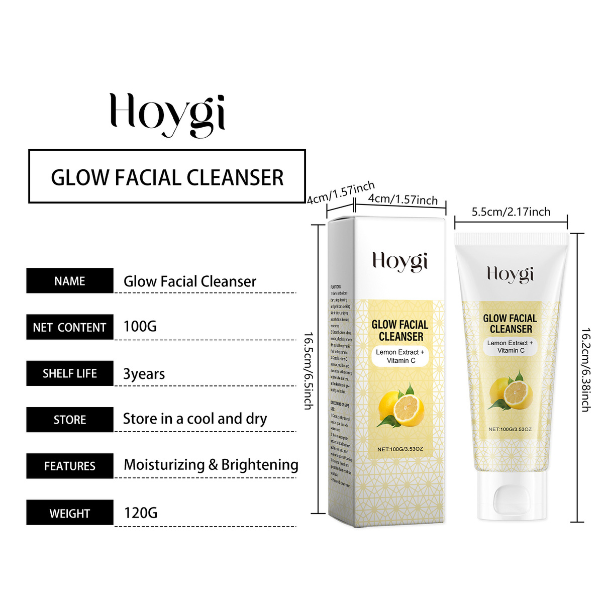 Hoygi Vitamin C Brightening Cleanser, Moisturizes And Soothes Facial Skin With A