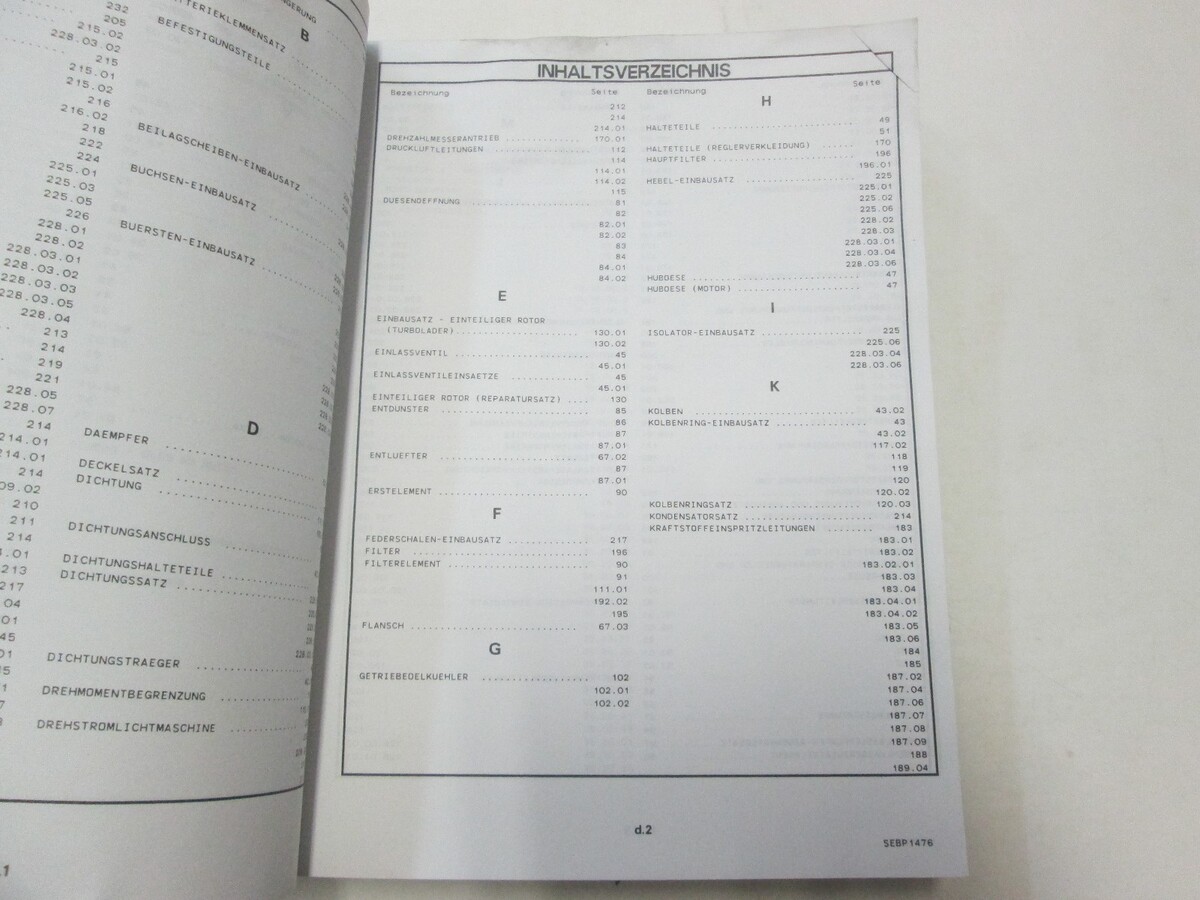 Das Teilehandbuch ist durchgehend wassergeschadigt und weist Flecken auf der Vorder- und Rückseite sowie dem Buchrücken auf. Insgesamt sind die darin enthaltenen Inhalte in einem gut lesbaren Zustand.