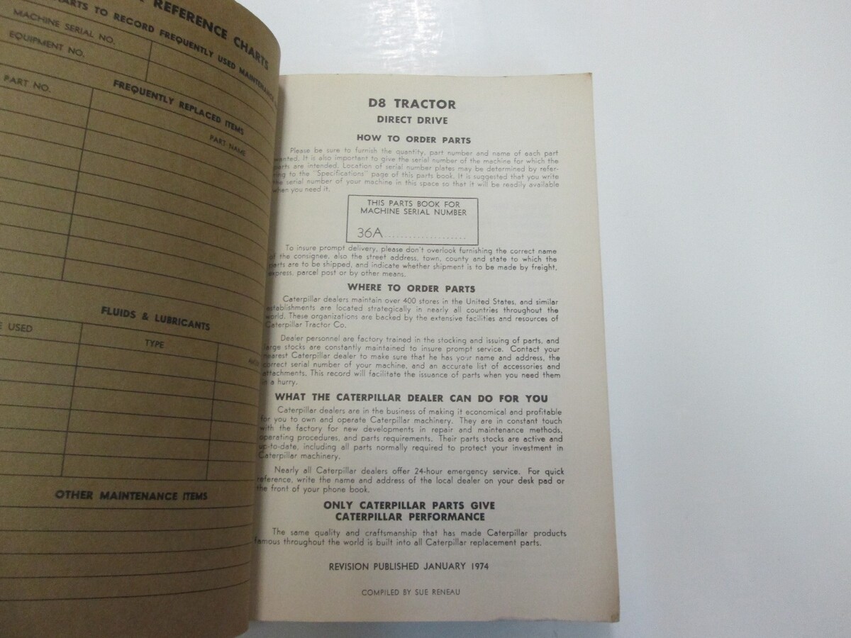 Caterpillar D8 Traktor Teile Buch Manuell Beschadigt Fehlende Bezüge Fabrik OEM