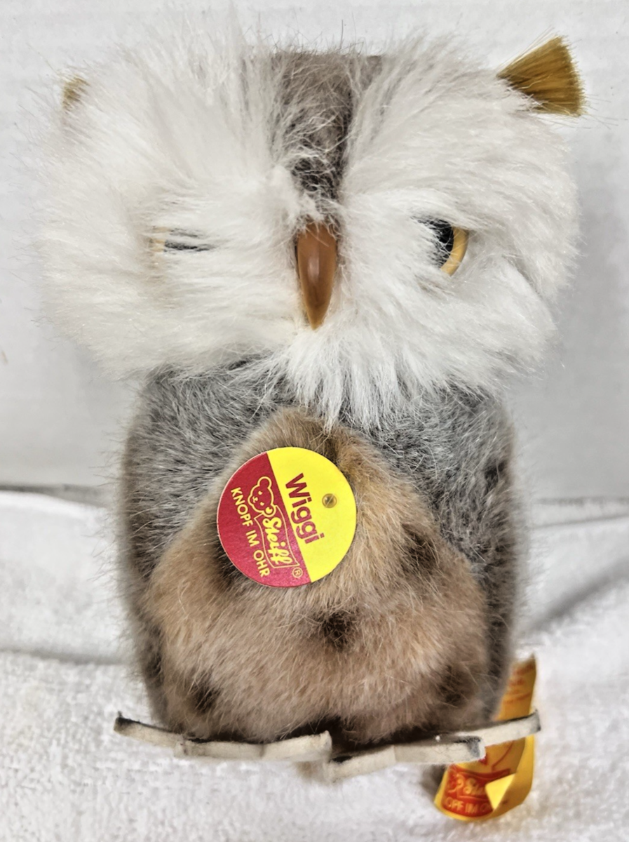 Steiff Wiggi Owl w Original Tags and Button 6 1/4 inches Nice Clean Shape In good shape the one tag is curled