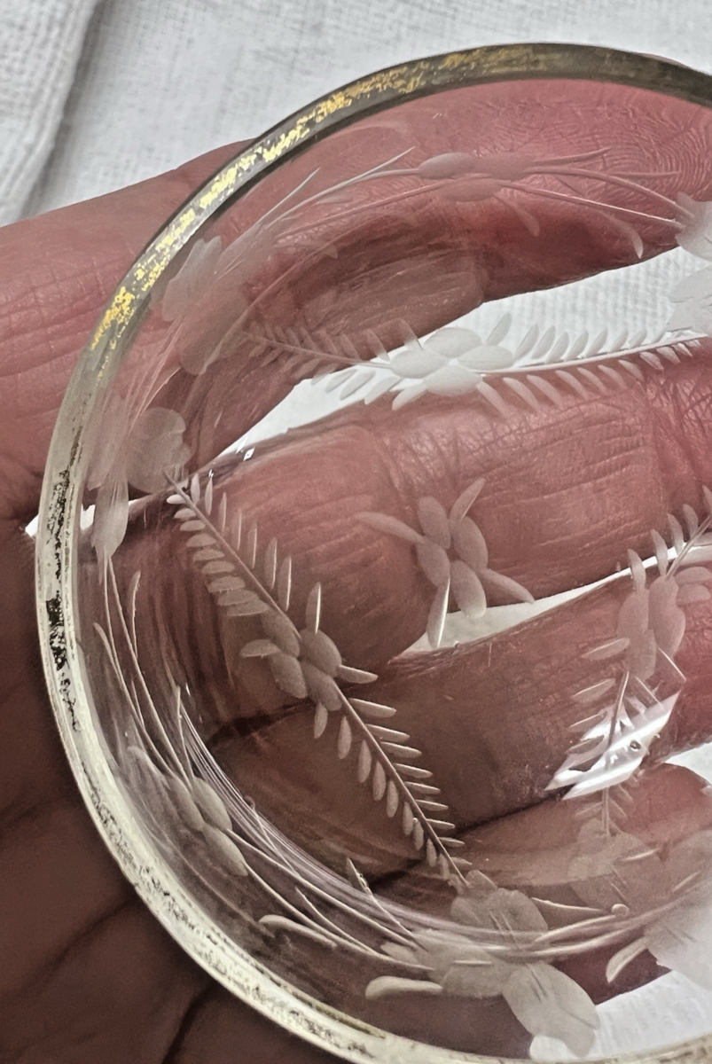 Antique Floral Etched Crystal Salt Dip Garlands Gold Trim 2 1/4" W 3/4" T
