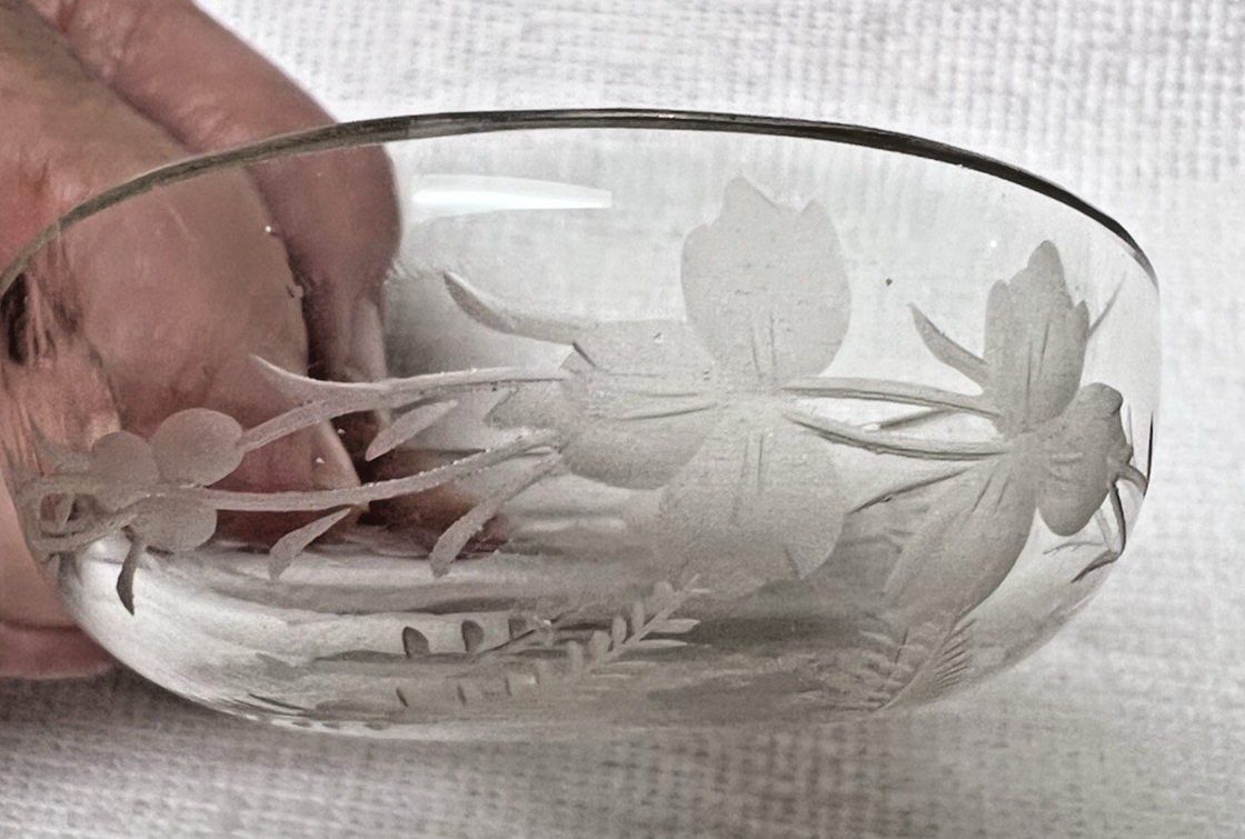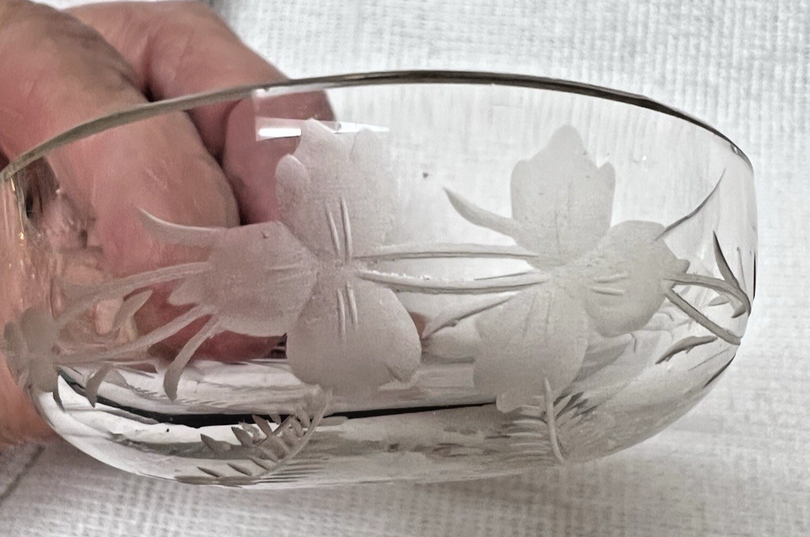 Antique Floral Etched Crystal Salt Dip and 50 similar items