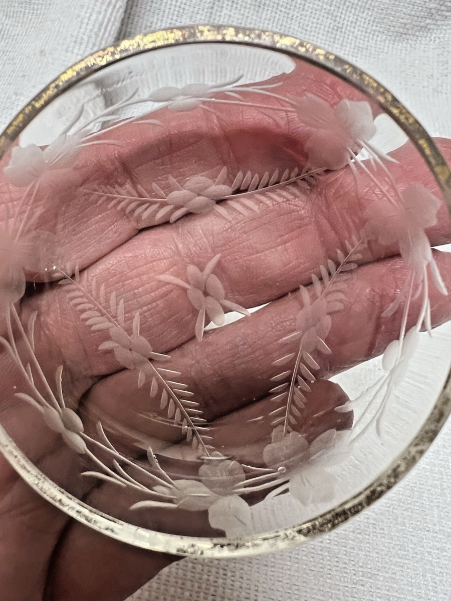 Antique Floral Etched Crystal Salt Dip Garlands Gold Trim 2 1/4" W 3/4" T In Great shape however most of the gold trim has worn away