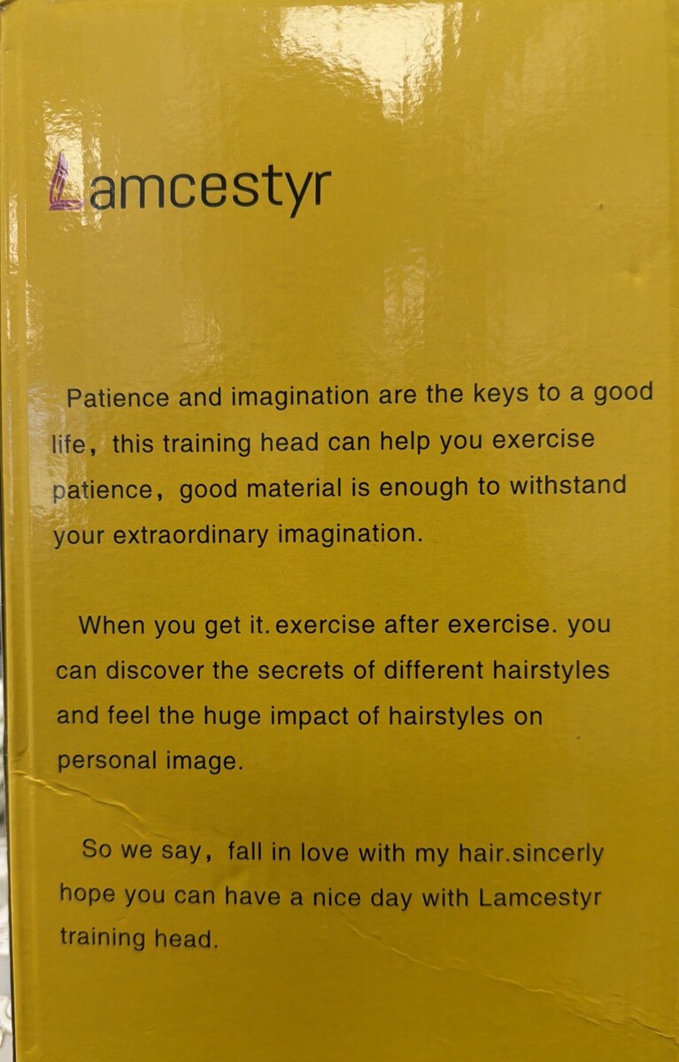 Lamcestyr Mannequin Hairdresser Training Head w/ Stand 100% Real Hair 16" NIB