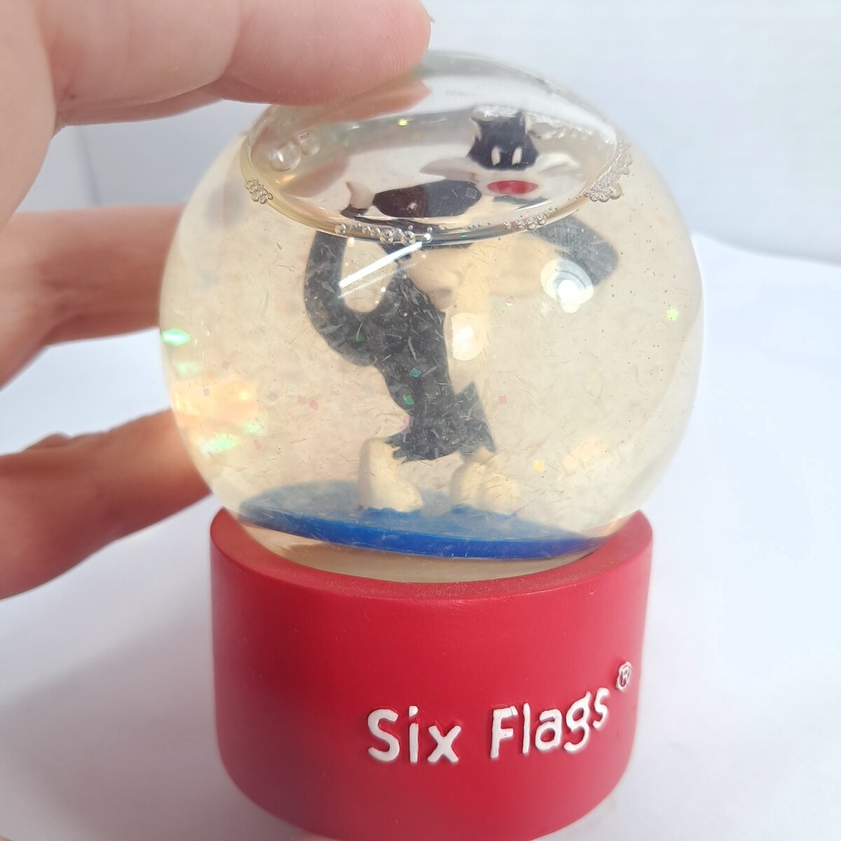Vintage Six Flags Looney Tunes Snow Globe Sylvester WB 1997 mini snowglobe Toons