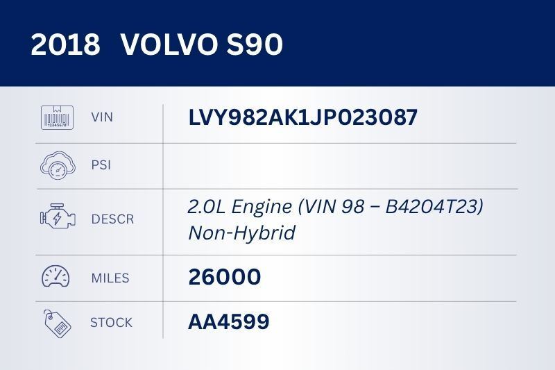 VOLVO S90 18 (2.0L), w/o hybrid; VIN 98 (4th and 5th digit, B4204T23 engine)