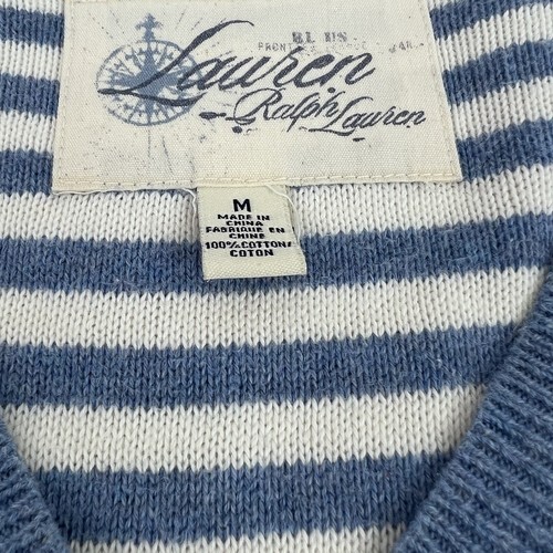LAUREN by Ralph Lauren Light Blue Striped Nautical Sweater Size Medium